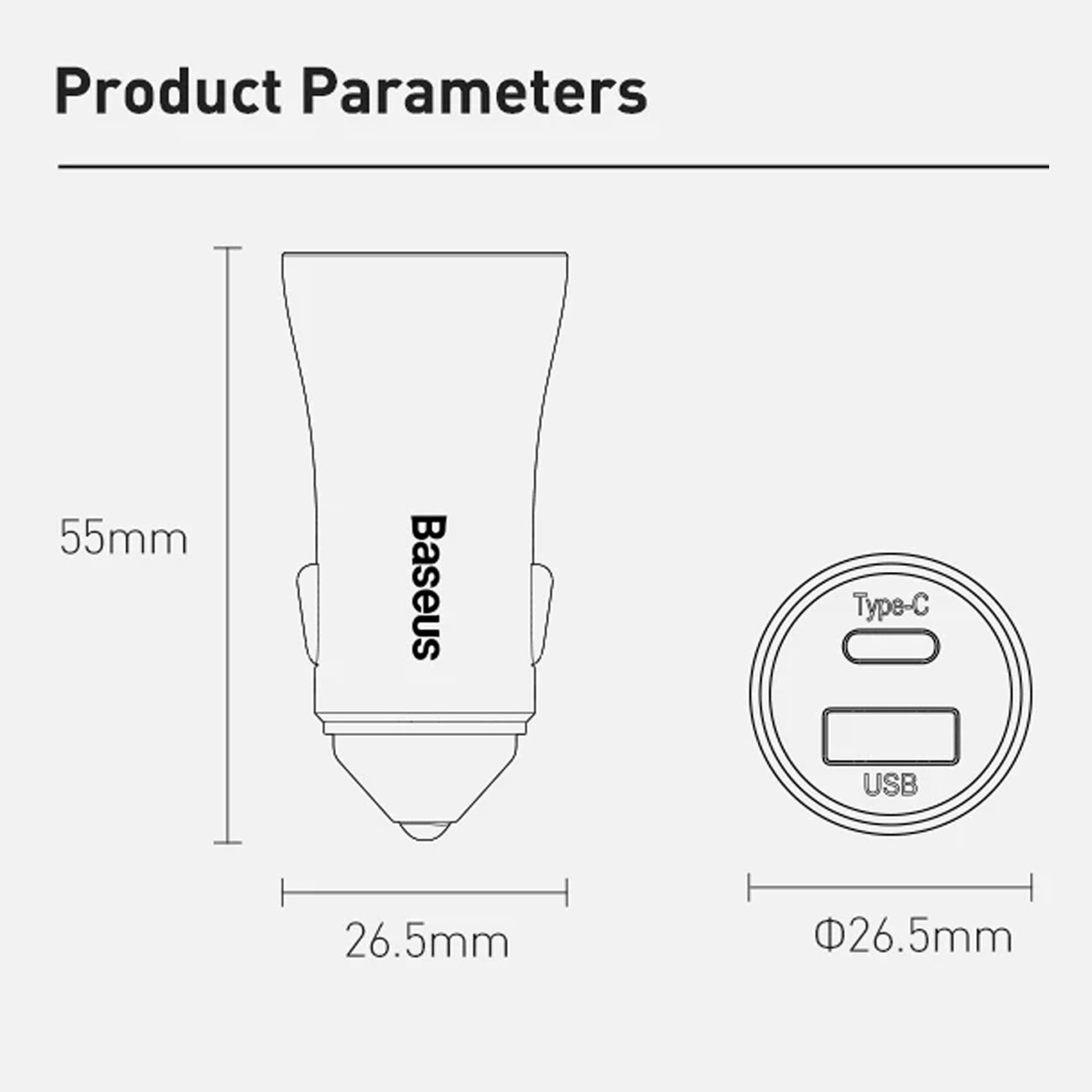 Baseus Golden Contactor Pro Dual Quick Charger Car Charger U+C 40W TZCCJD-B0G