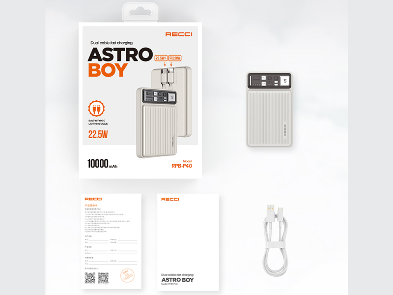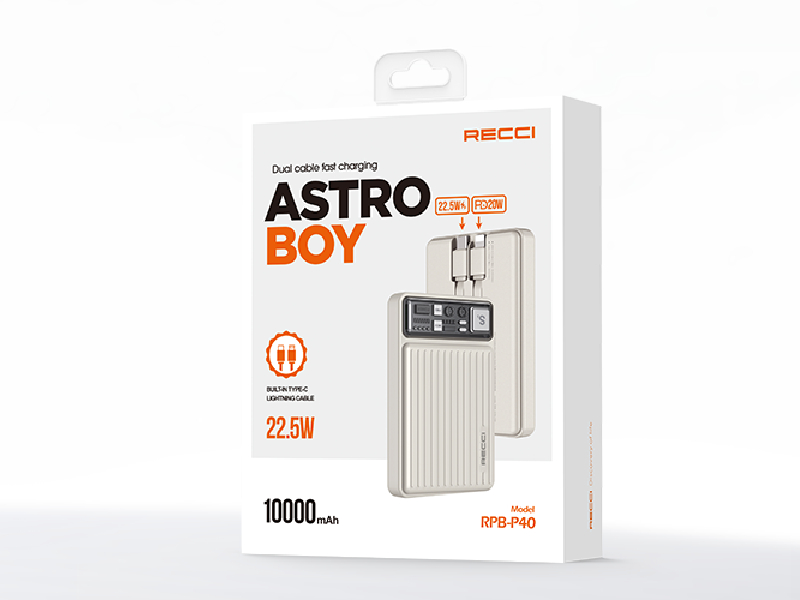 Recci RPB-P40 ASTRO BOY Dual Cable Fast Charging Power Bank 10000Mah