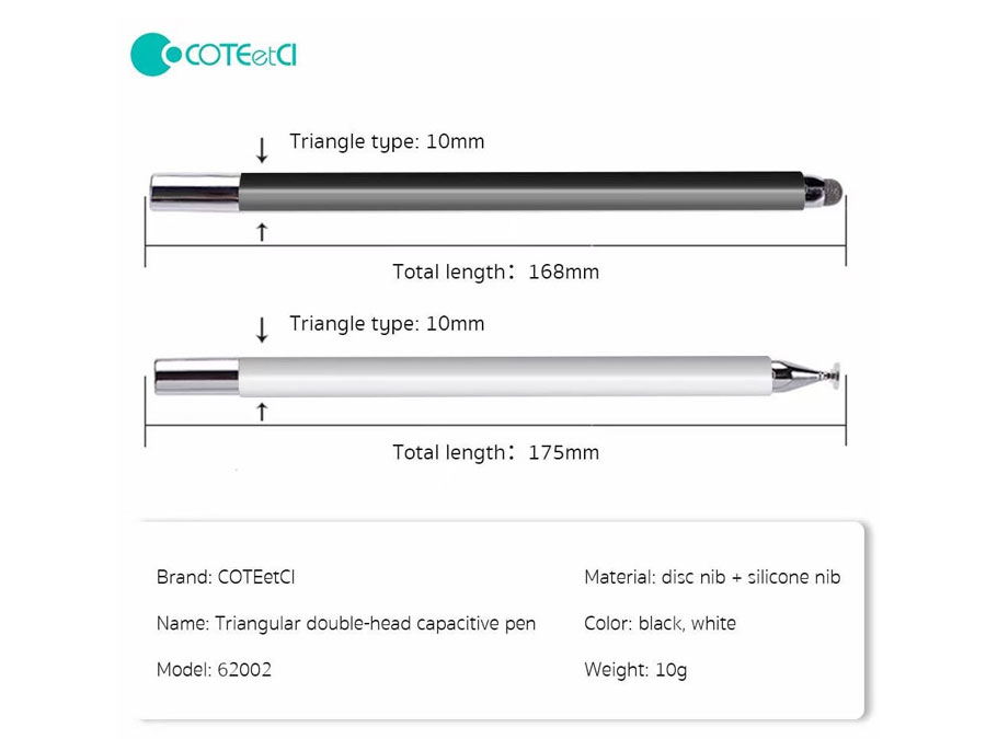 Coteetci Triangular double-head capacitive pen 62002-WH 62002-GY