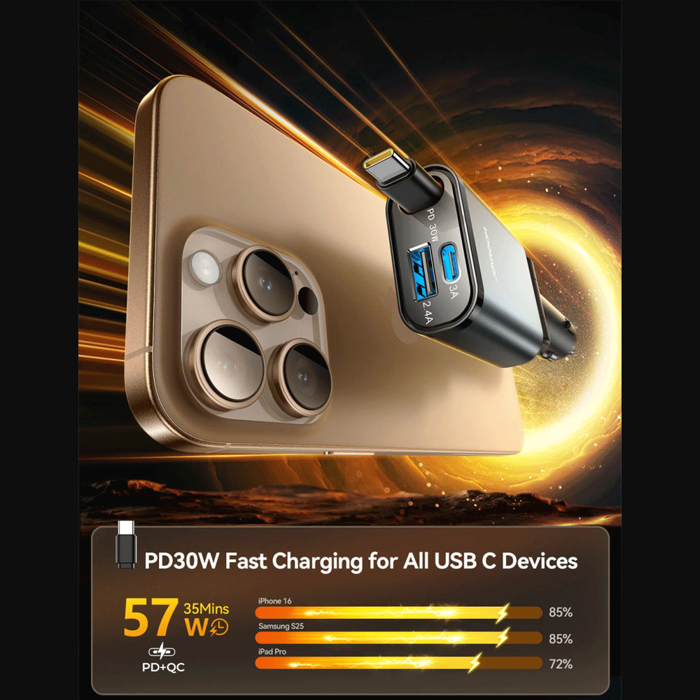 Joyroom JR-CCL07 30W 3-in-1 Retractable Cable Car Charger