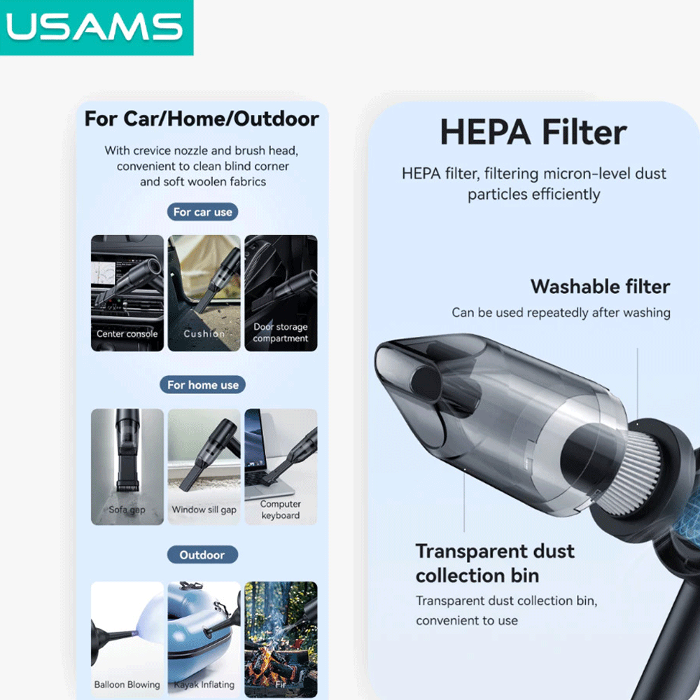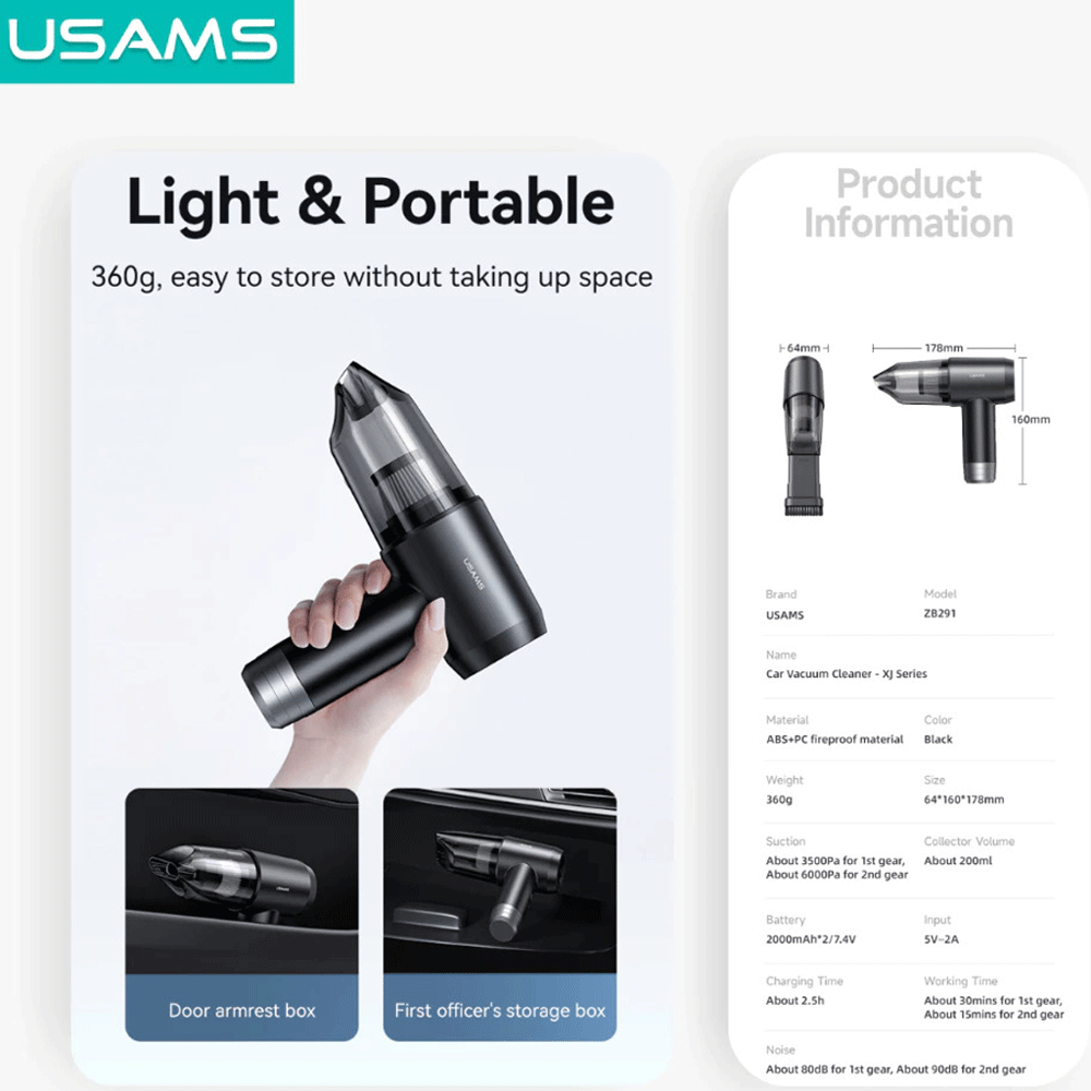 USAMS ZB291 XJ Series 6000Pa Hand-held Car Vacuum Cleaner
