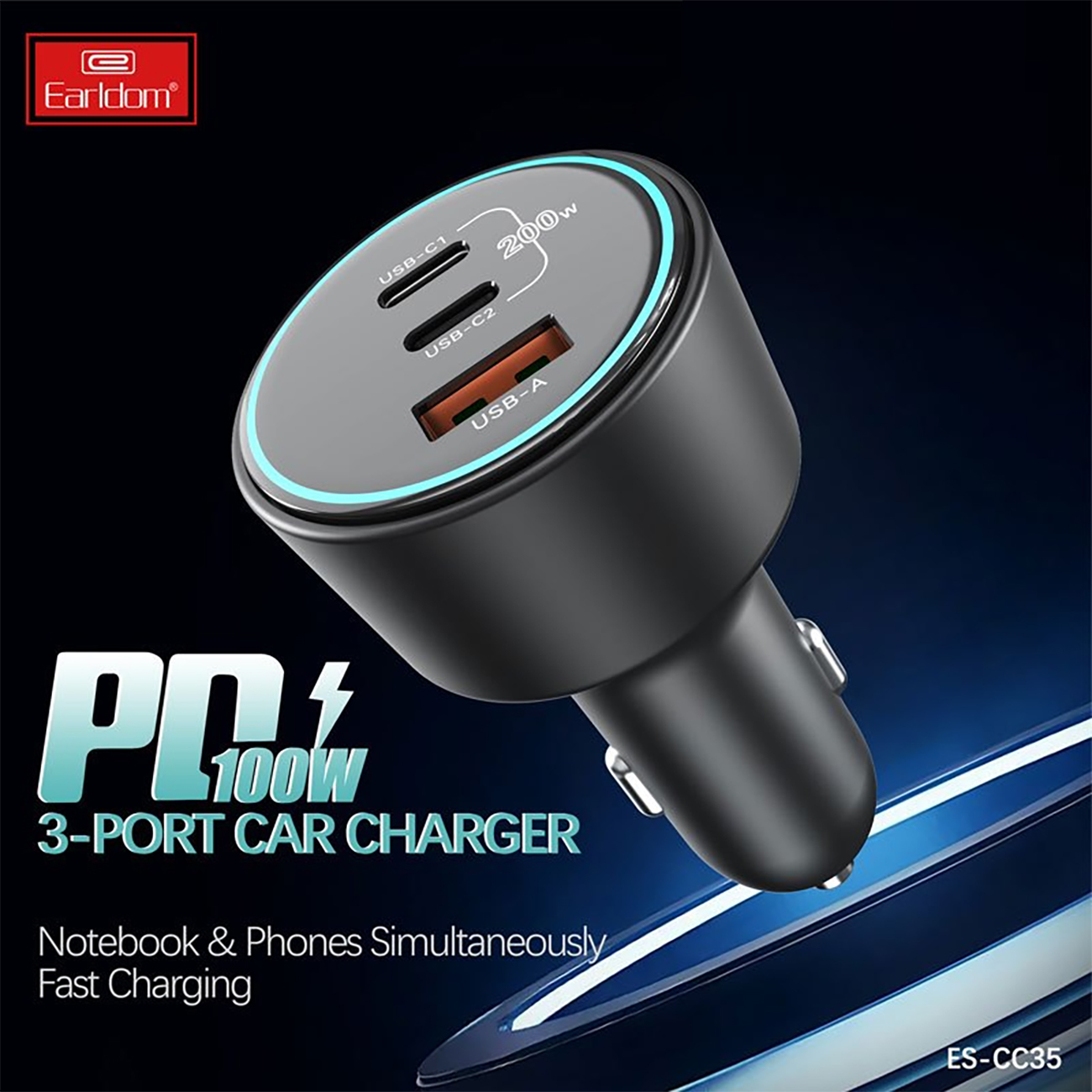 Earldom ES-CC35 PD 5A 100W Triple Port Car Charger