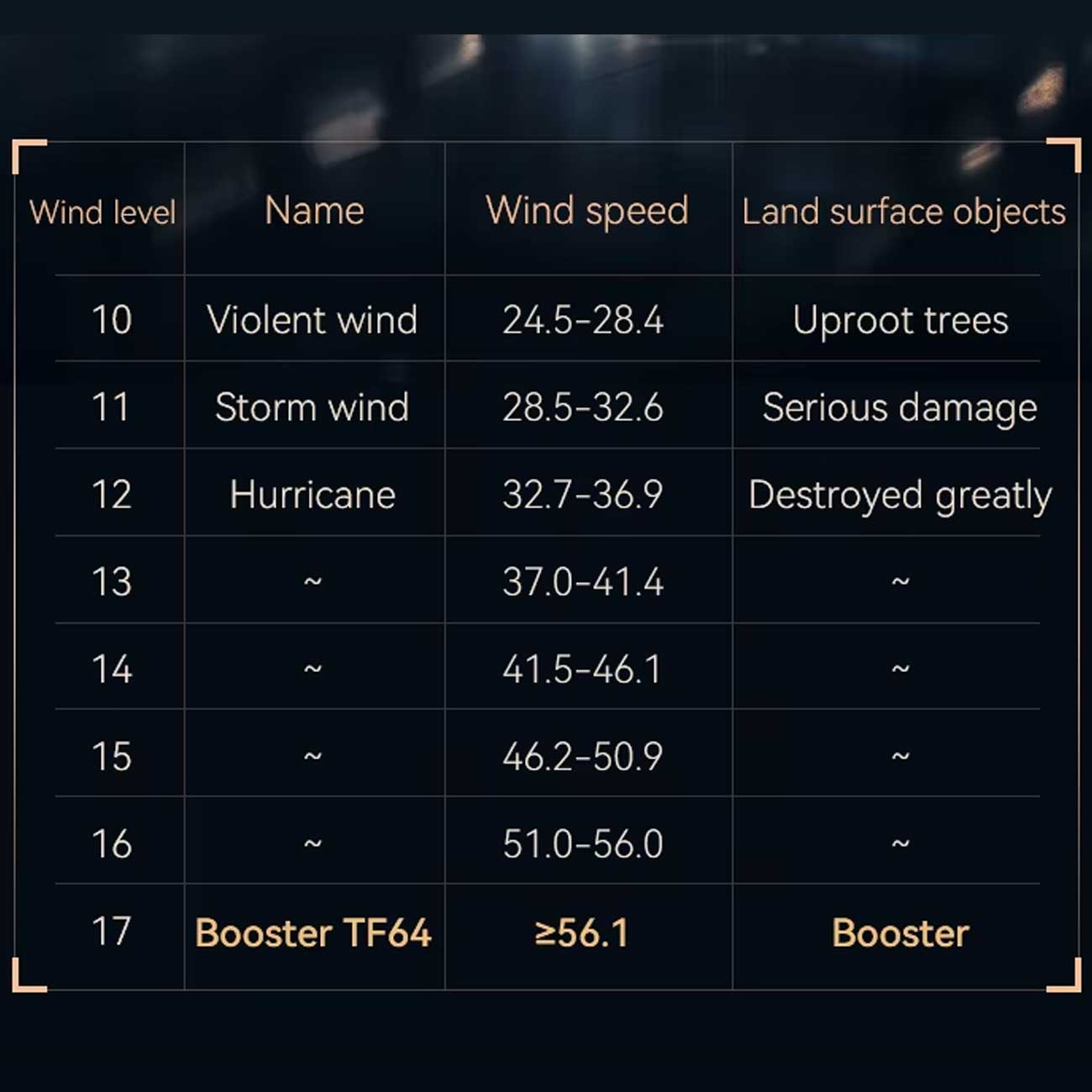 | نیروی باد | 1600 گرم (1.6kg) معادل با سرعت باد 60m/s |