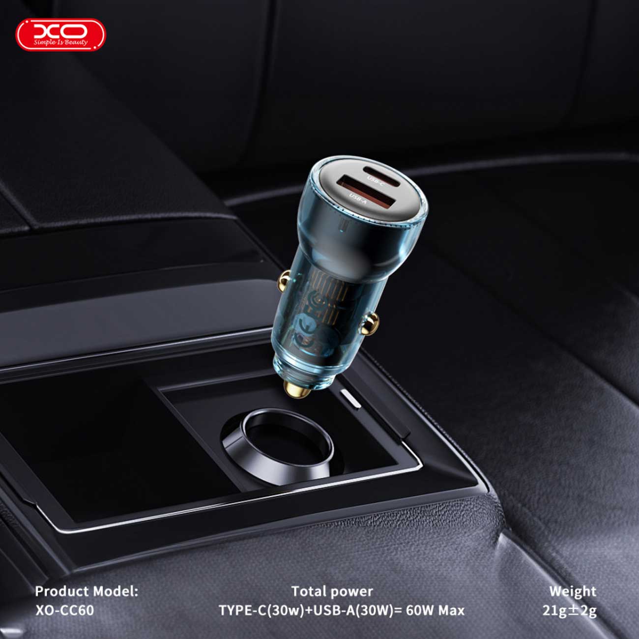 شارژر فندکی فست شارژ ماشین تایپ سی 60 وات 3 آمپر ایکس او CC60