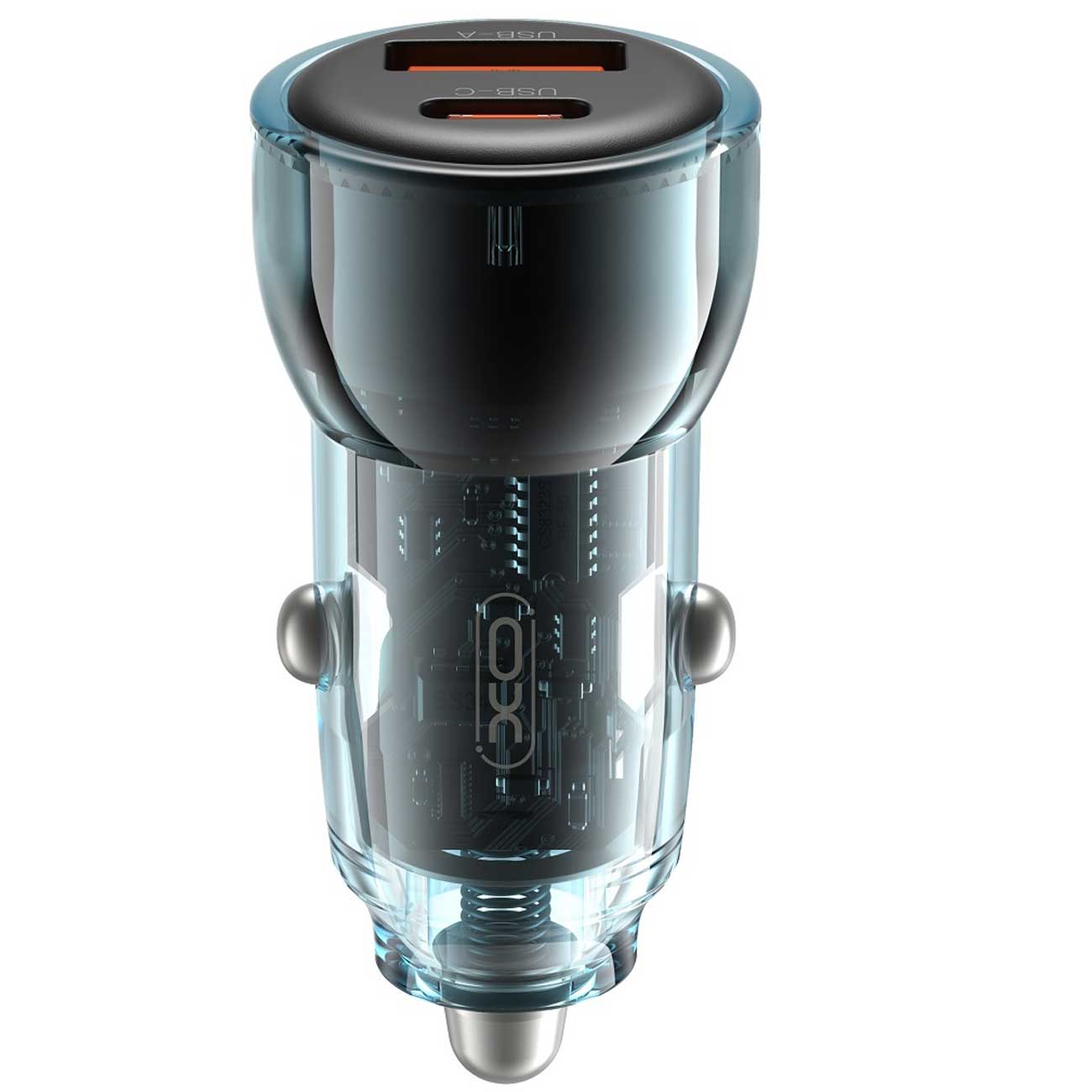 XO car charger CC60 60W 1x USB 1x USB-C blue + USB-C - USB-C cable