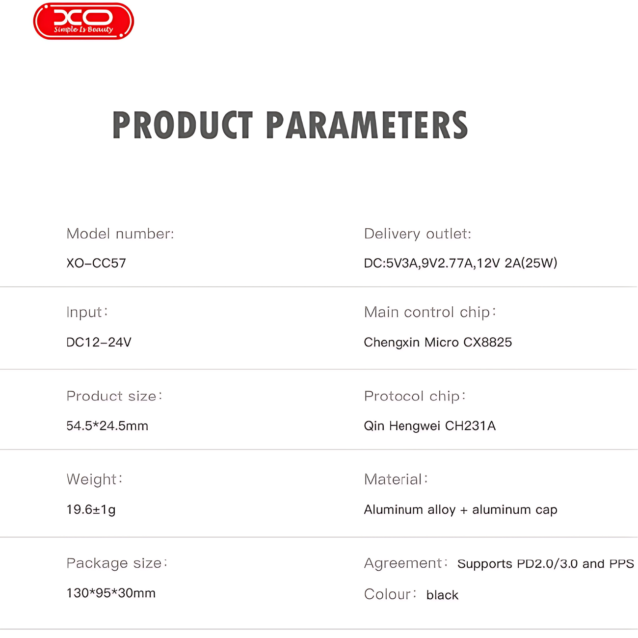 XO-CC57 PD 25W Car Charger + iP Cable