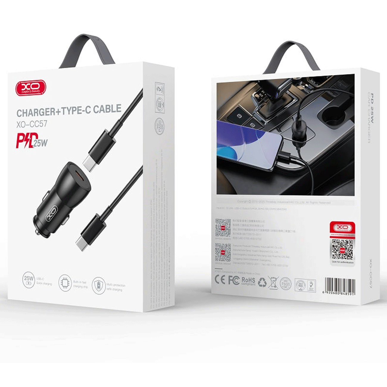 XO car charger CC57 PD 25W 1x USB-C + USB-C - USB-C cable