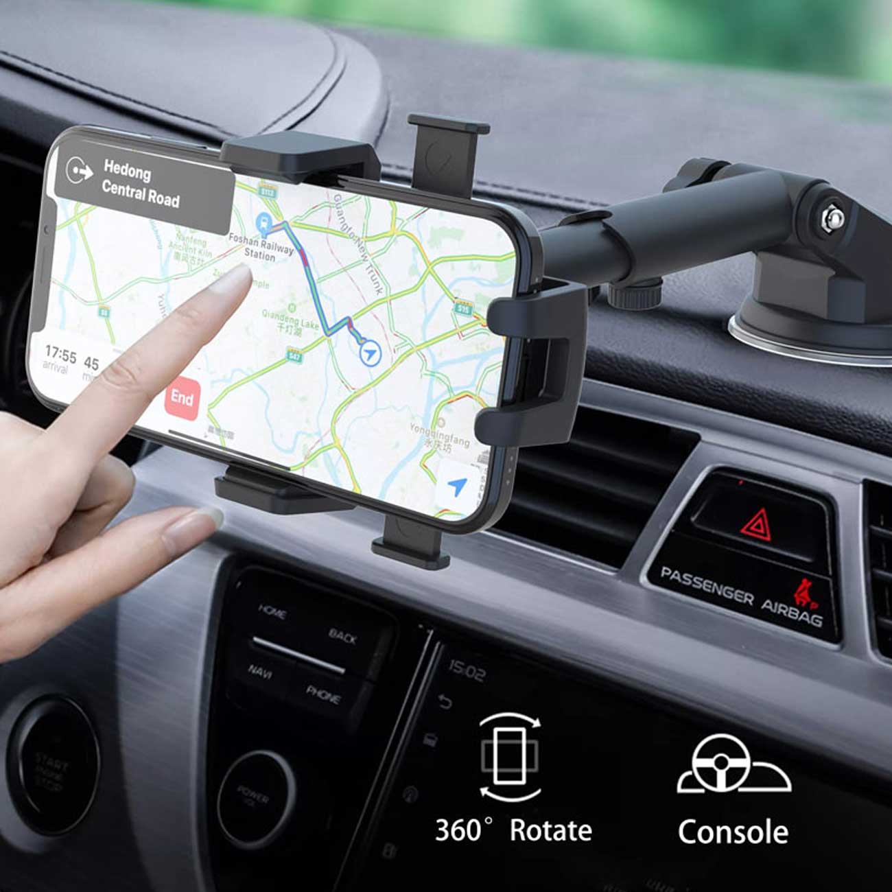 | محل نصب | داشبورد خودرو، شیشه خودرو، روی میز و دیگر سطوح صاف |