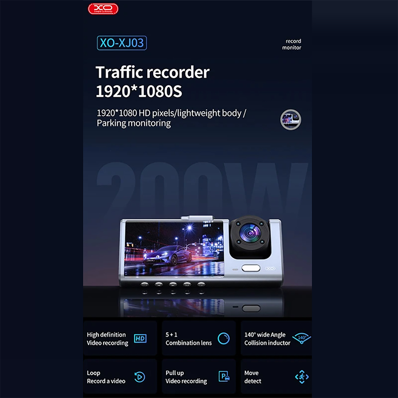 XO camera car XJ03 front rear recorder FullHD