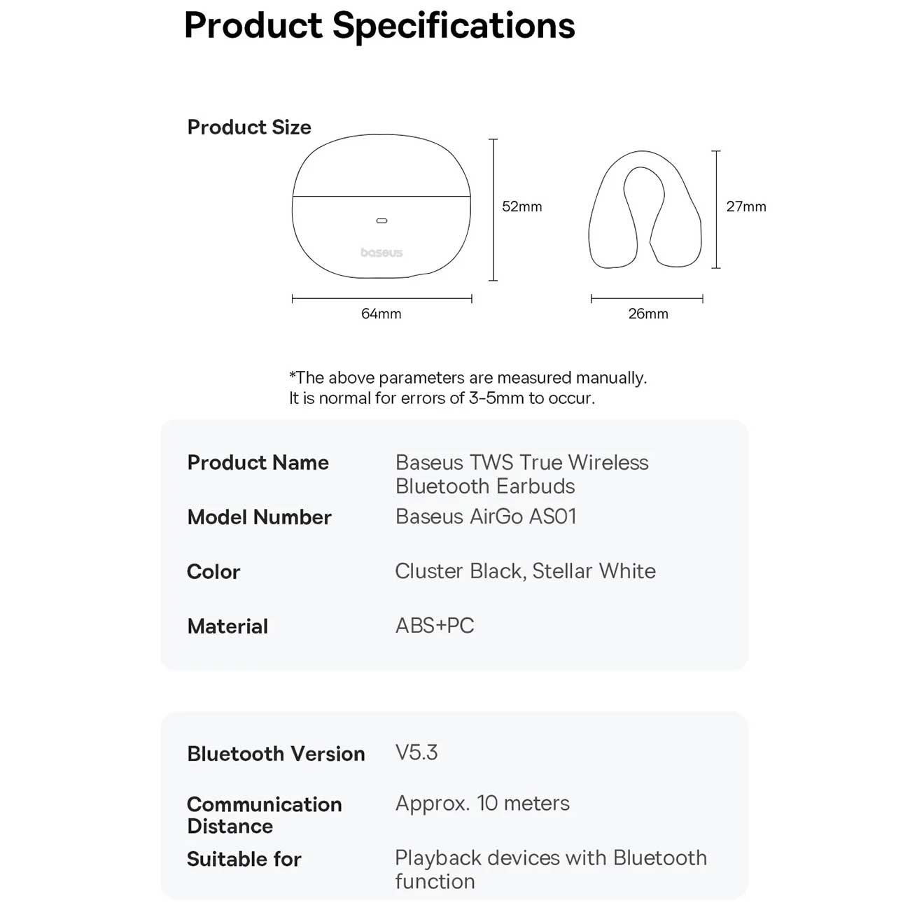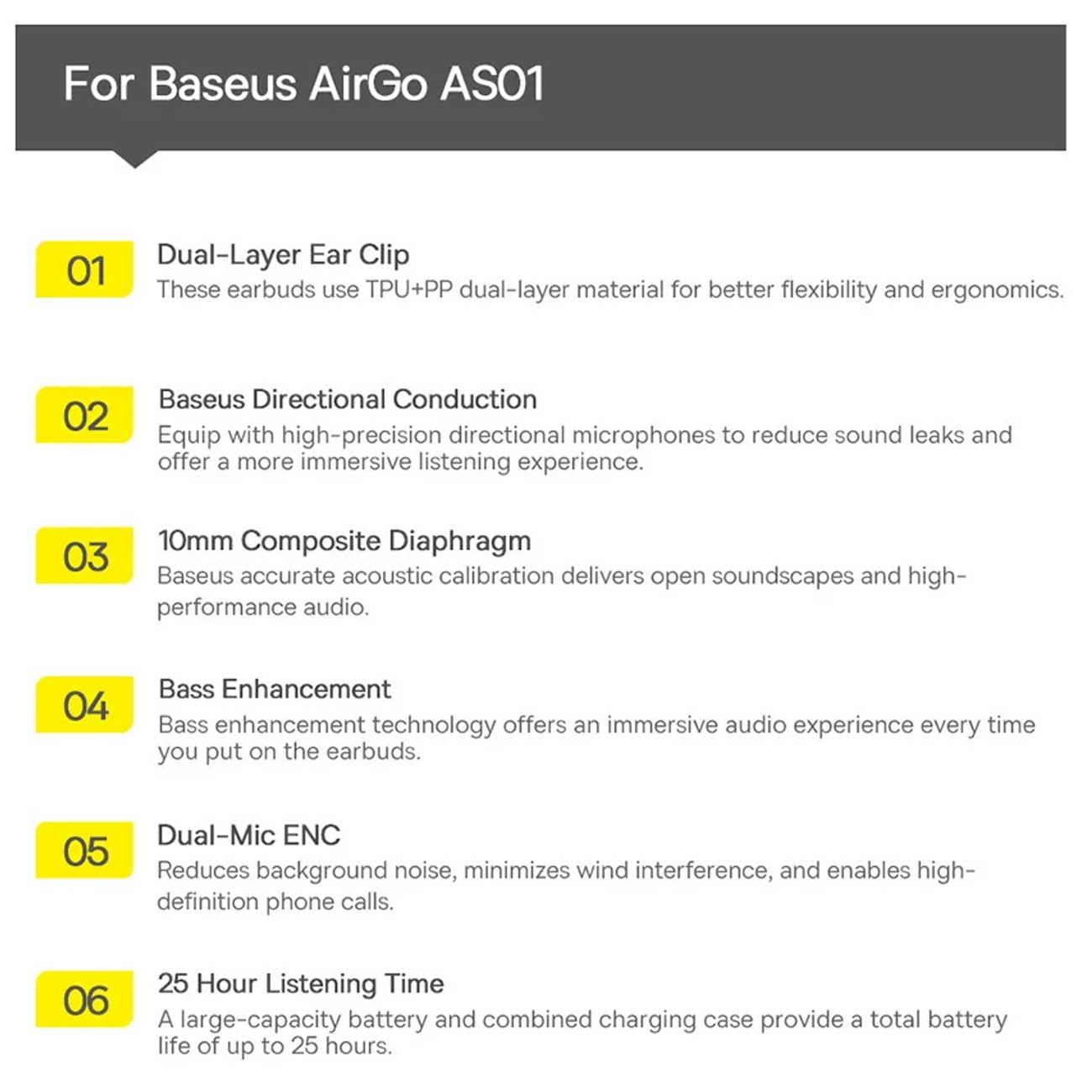 Baseus AirGo AS01 Clip-On Open-Ear Earphones A00079500113-00 A00079500223-00