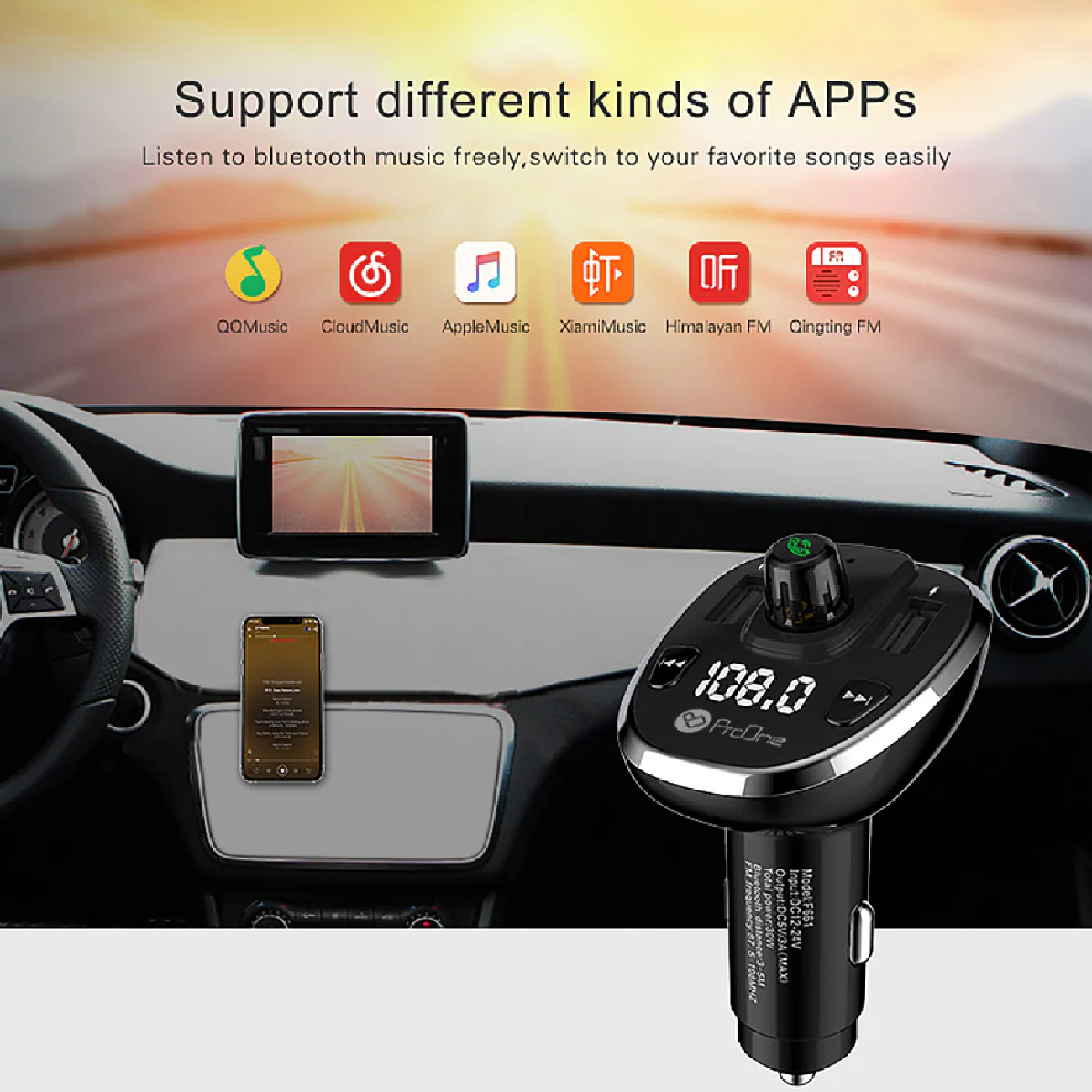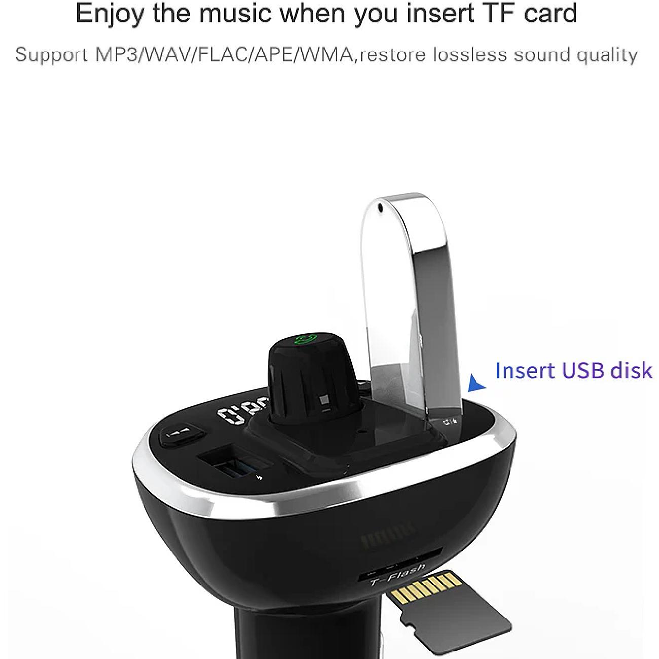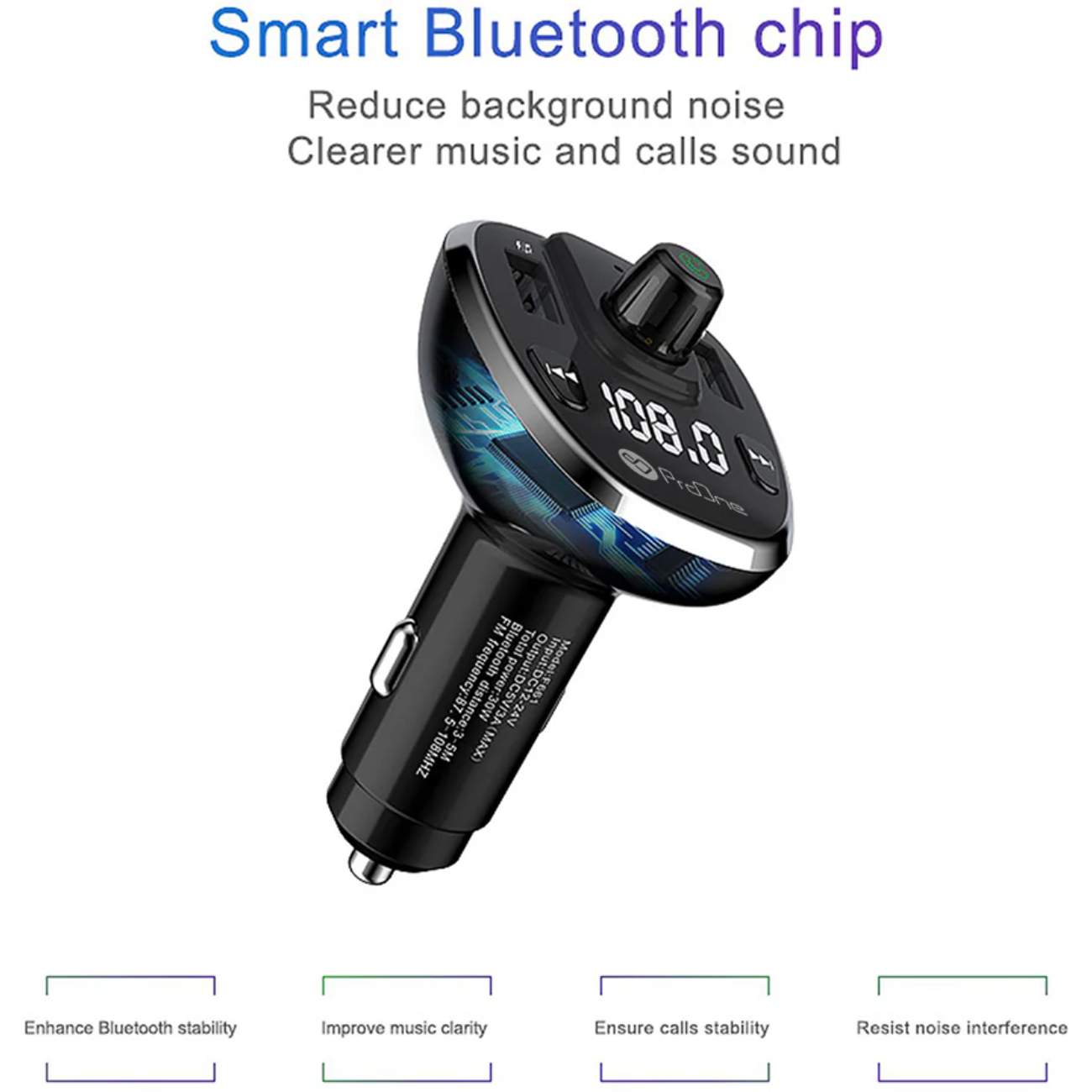 | سایر مشخصات | - سازگار با انواع خودروهای سبک و سنگین - پخش بلوتوثی، کارت TF، فلش مموری و FM - پاسخگویی به تماس های دریافتی در حین رانندگی - شارژ سریع و همزمان 2 دستگاه - دارای نمایشگر دیجیتالی جهت نمایش موج رادیو - قابلیت تنظیم موج فرکانس - امکان تنظیم ولوم صدا و کنترل موسیقی - سازگار با اپلیکیشنهای مسیریابی - سازگار با FM Radio |