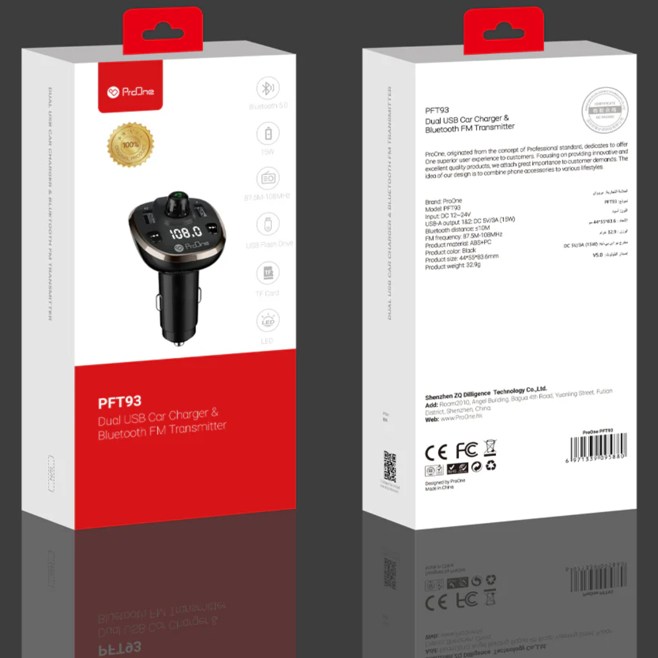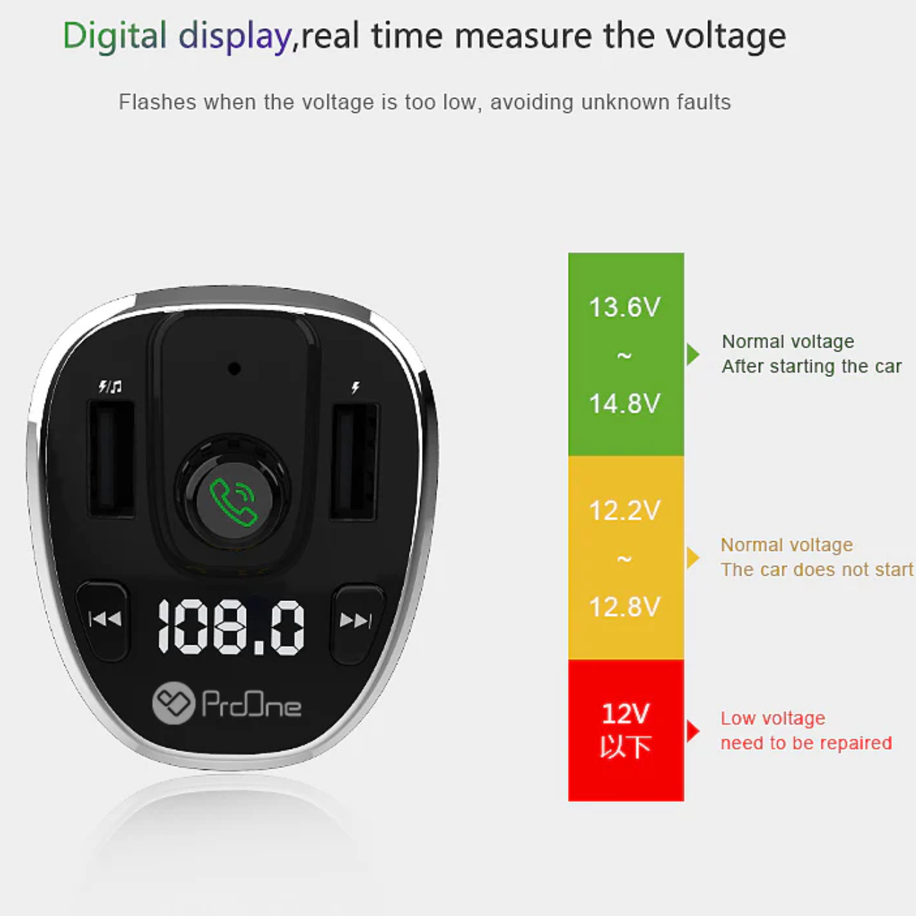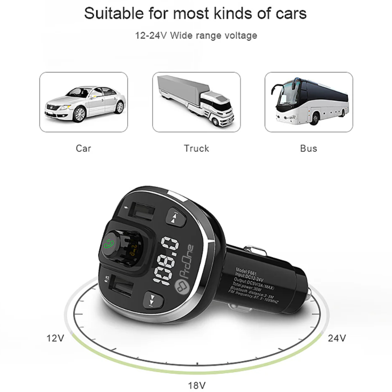ProOne PFT93 Dual USB Car Charger & Bluetooth FM Transmitter