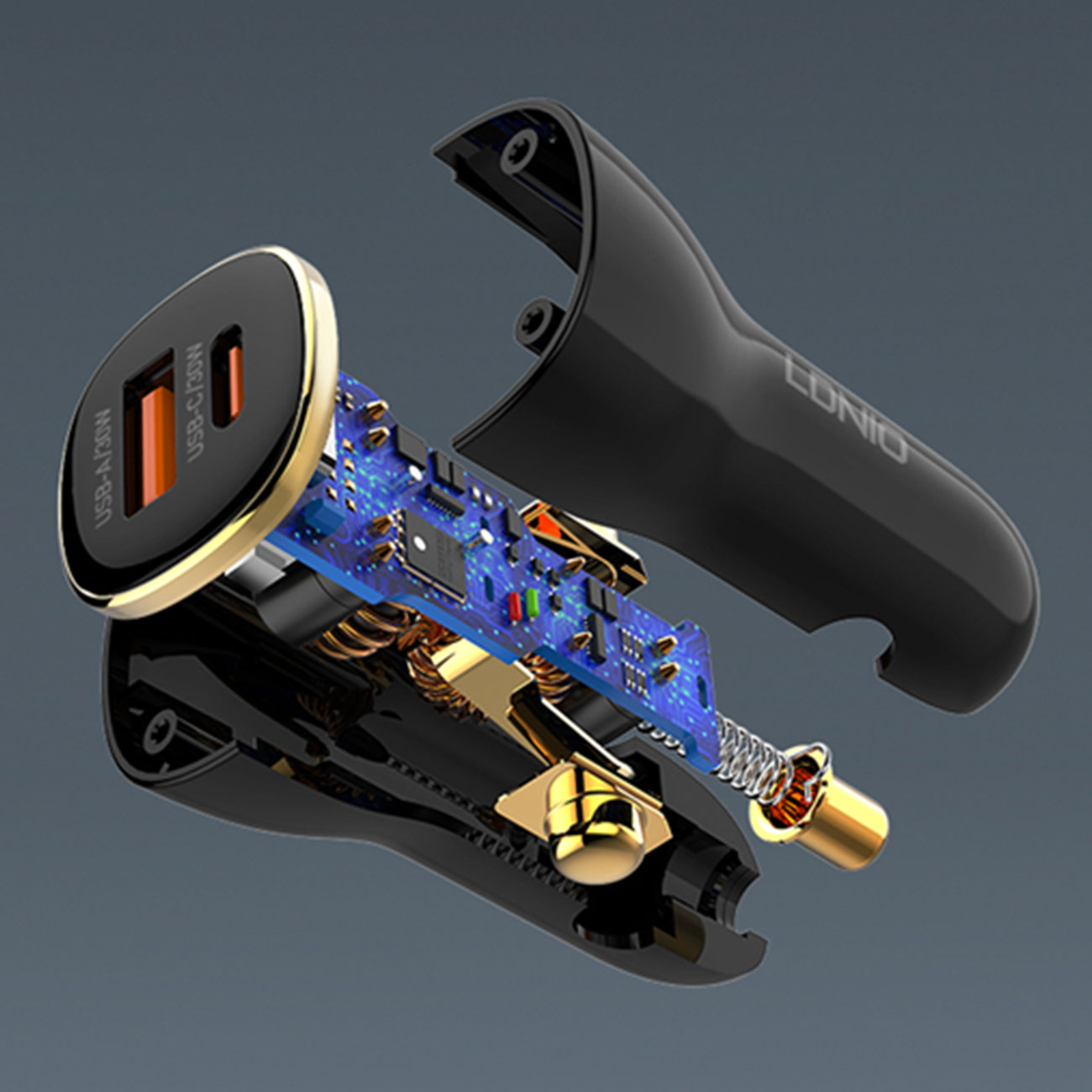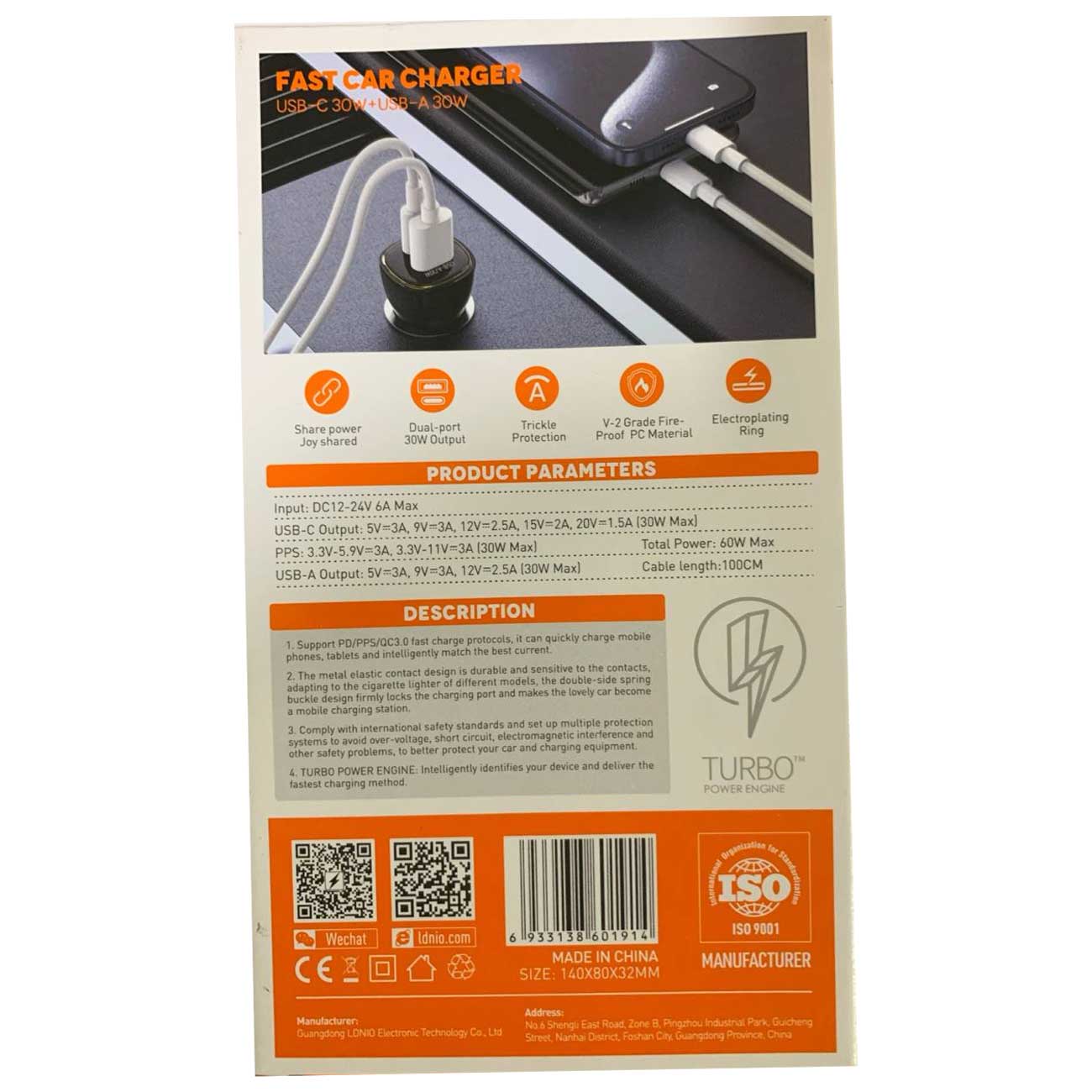 شارژر فندکی فست شارژ ماشین تایپ سی همراه با کابل آیفونی و اندرویدی الدنیو C103