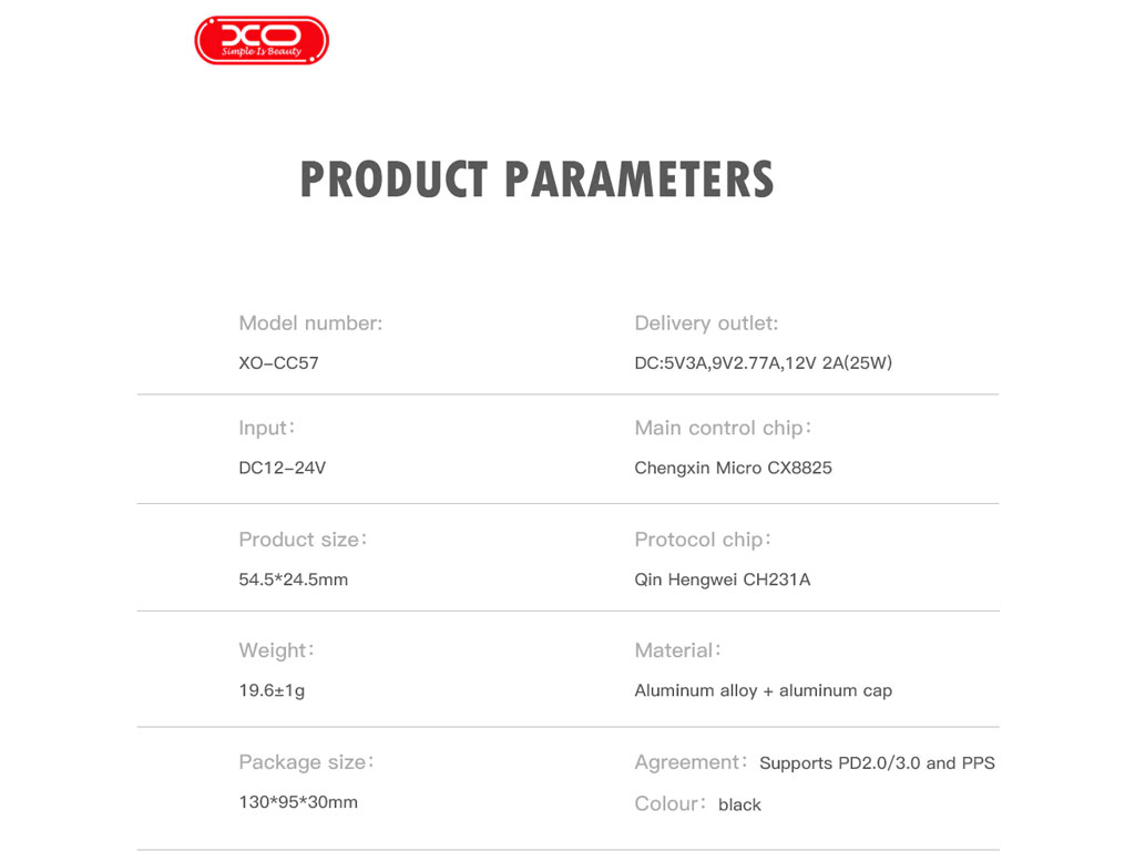 شارژر فندکی فست شارژ ماشین تایپ سی 30وات ایکس او CC57