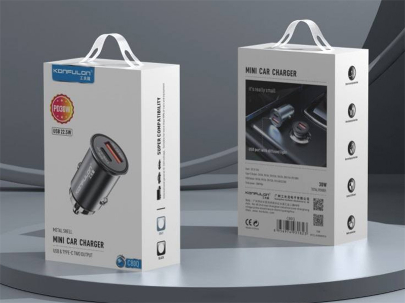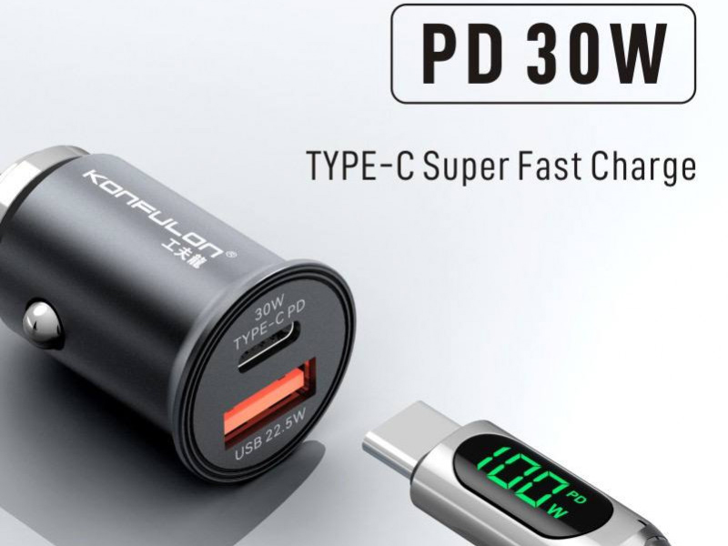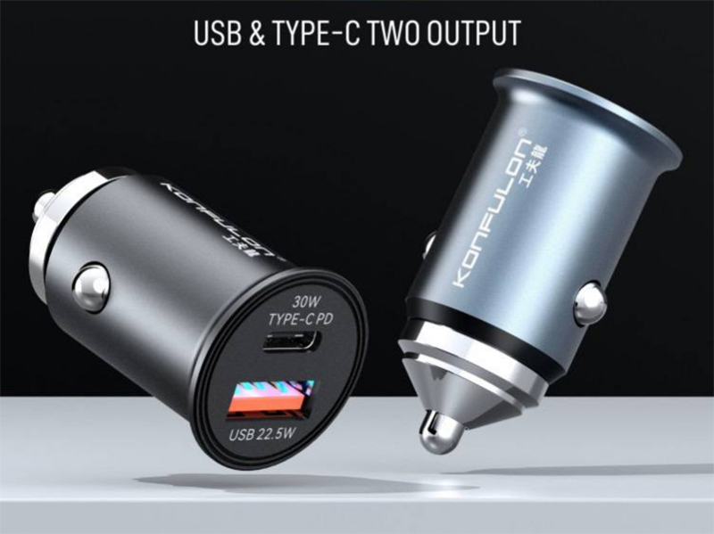 Konfulon C80Q Car Charger USB & TYPE-C 2 Output