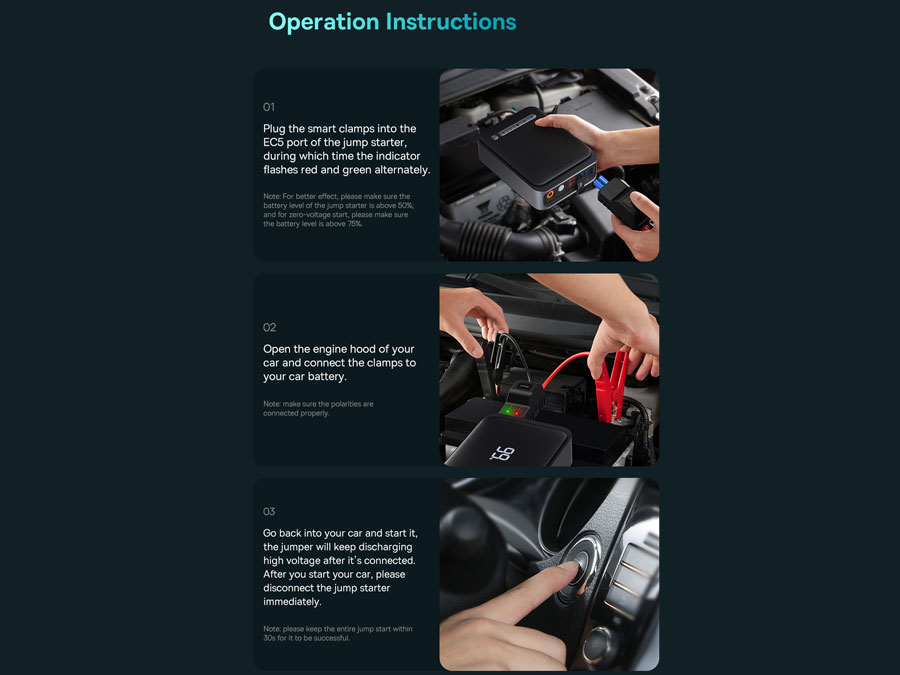 | امکانات و قابلیتها | مدت زمان مورد نیاز برای شارژ : 3 ساعت مدت زمان شارژهی : 180 روز ولتاژ سیلندر : 12 ولت دارای حفاظت 12 گانه قابلیت استفاده برای انواع خودروی سبک و سنگین |