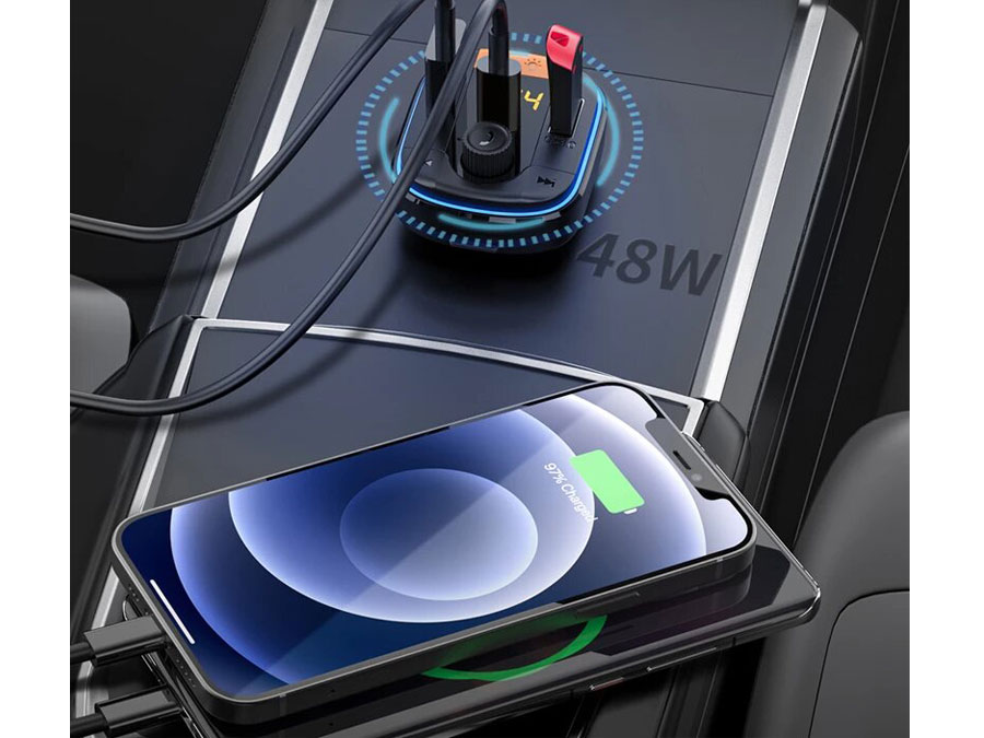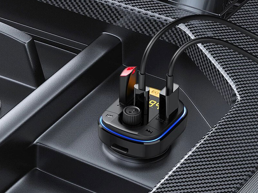 شارژر فندکی فست شارژ ماشین تایپ سی 48 وات و گیرنده بلوتوث خودرو رسی RQ01