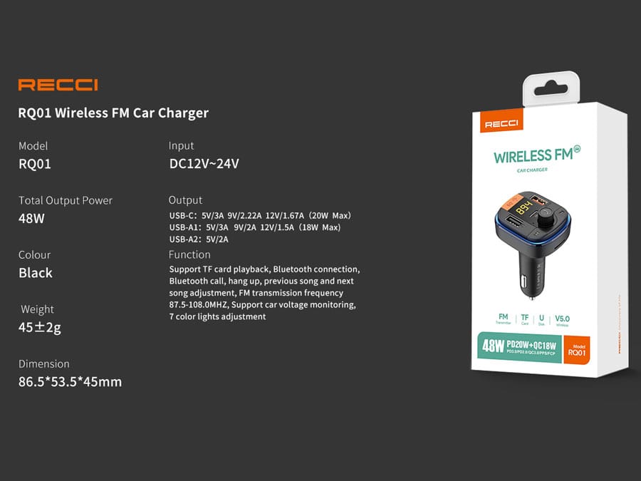 Recci RQ01 multifunctional wireless car MP3 player Bluetooth