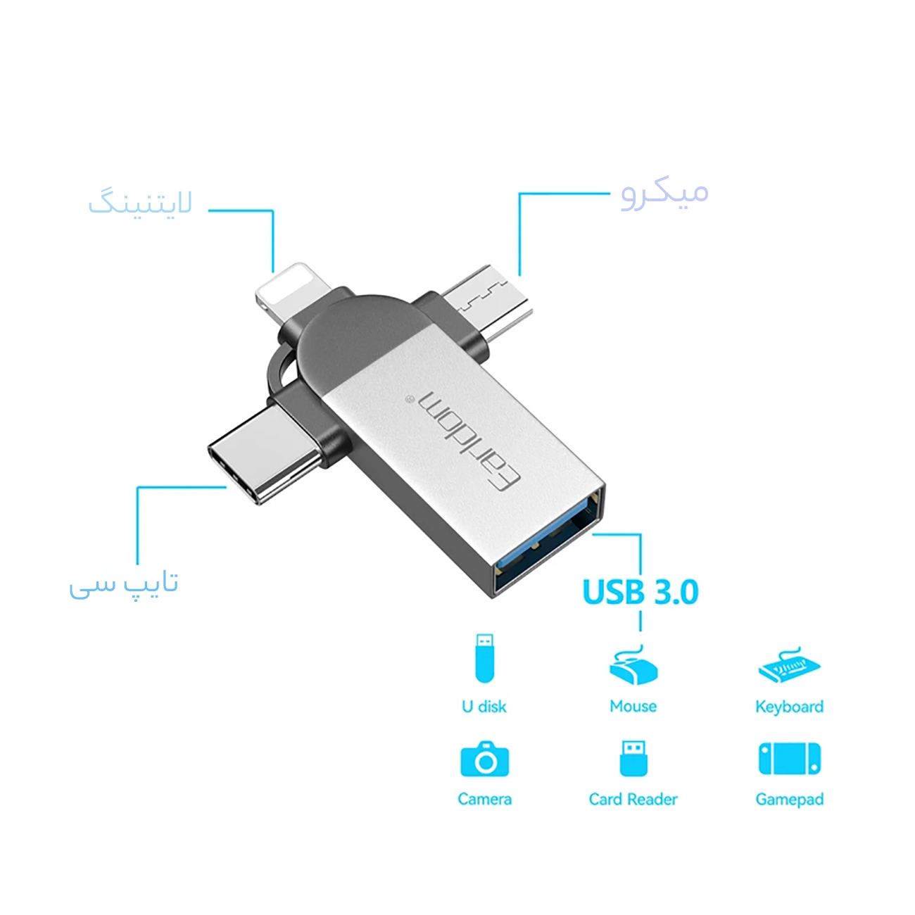 مبدل او تی جی یو اس بی به تایپ سی، لایتنینگ و میکرو یو اس بی ارلدام OT93
