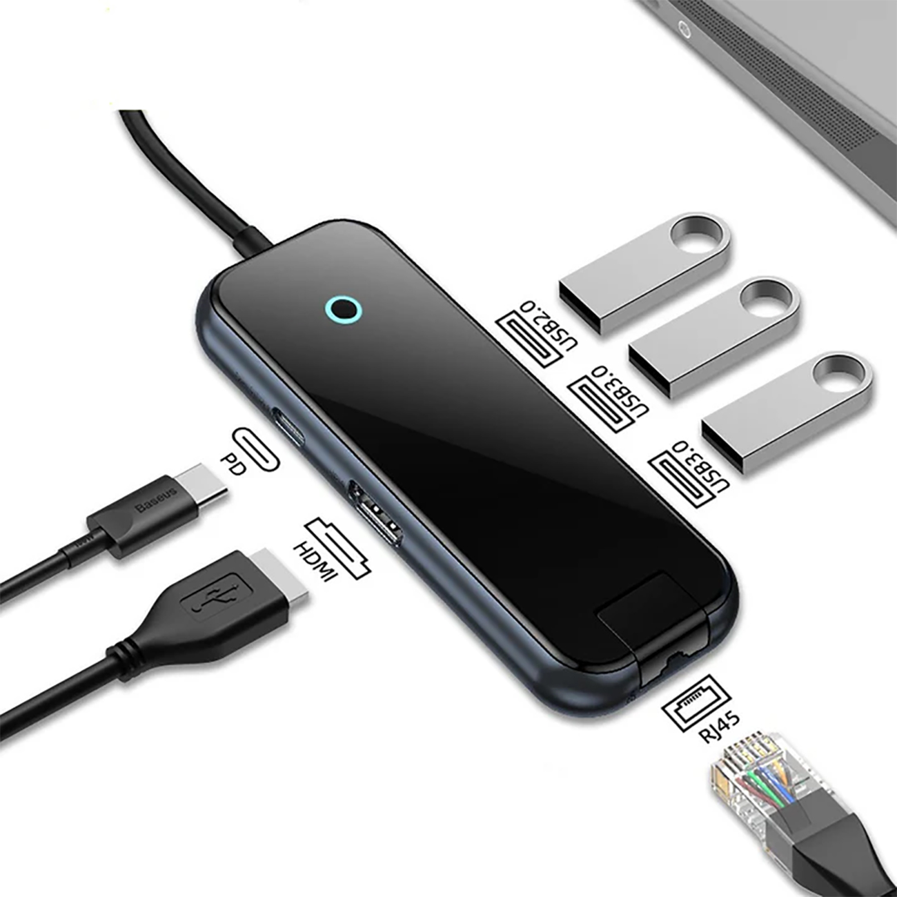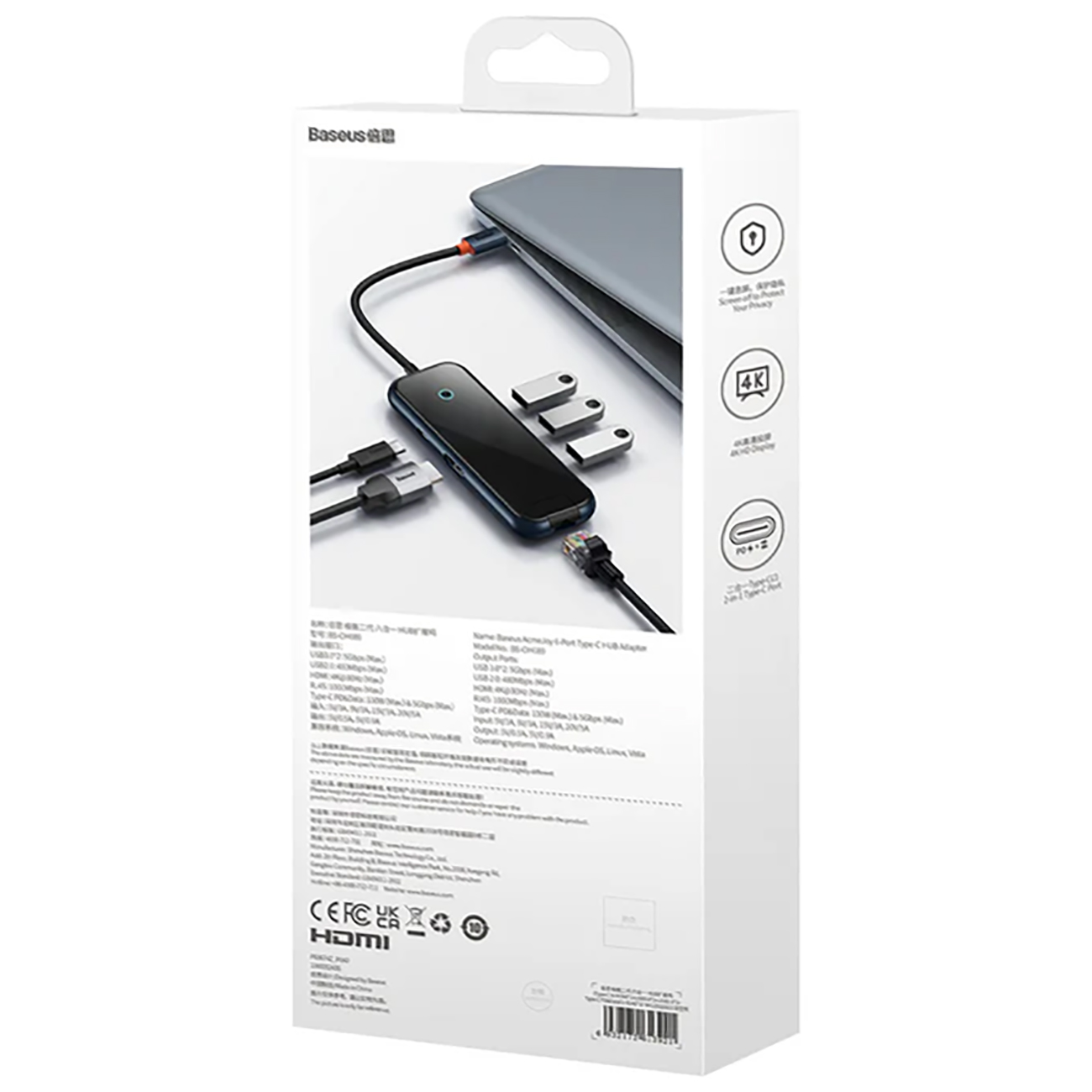 Baseus BS-OH089 WKJZ010313 Hub 6in1 AcmeJoy series USB-C to 2xUSB 3.0 + USB 2.0 + USB-C PD + HDMI + RJ45