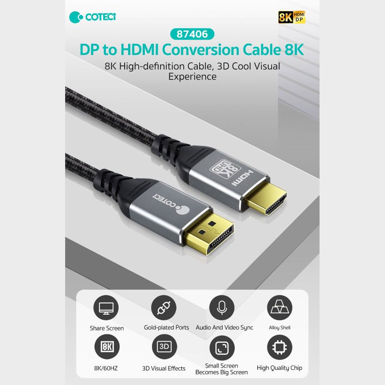 Coteci 87406 DP To Hdmi Conversion Cable 8K 1m