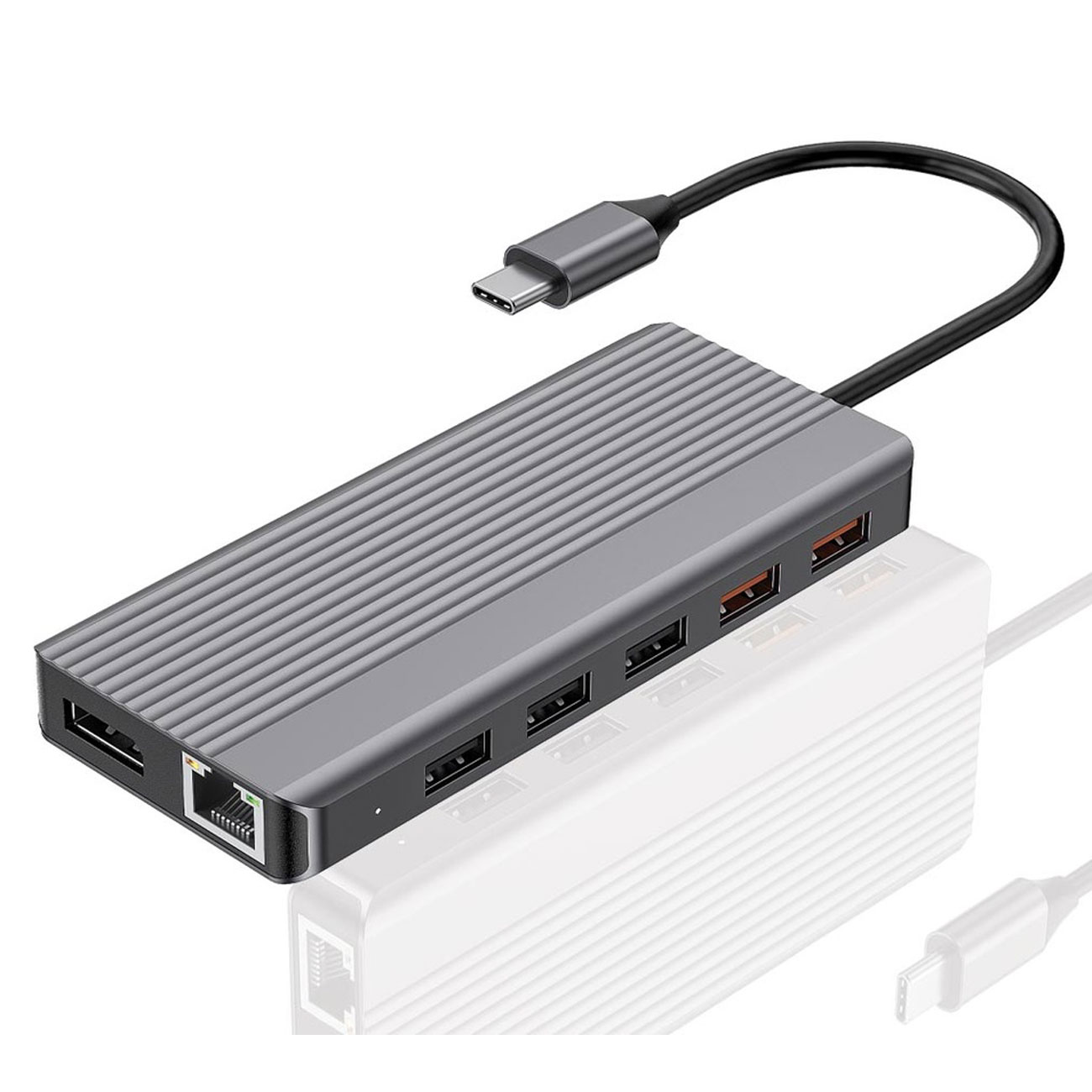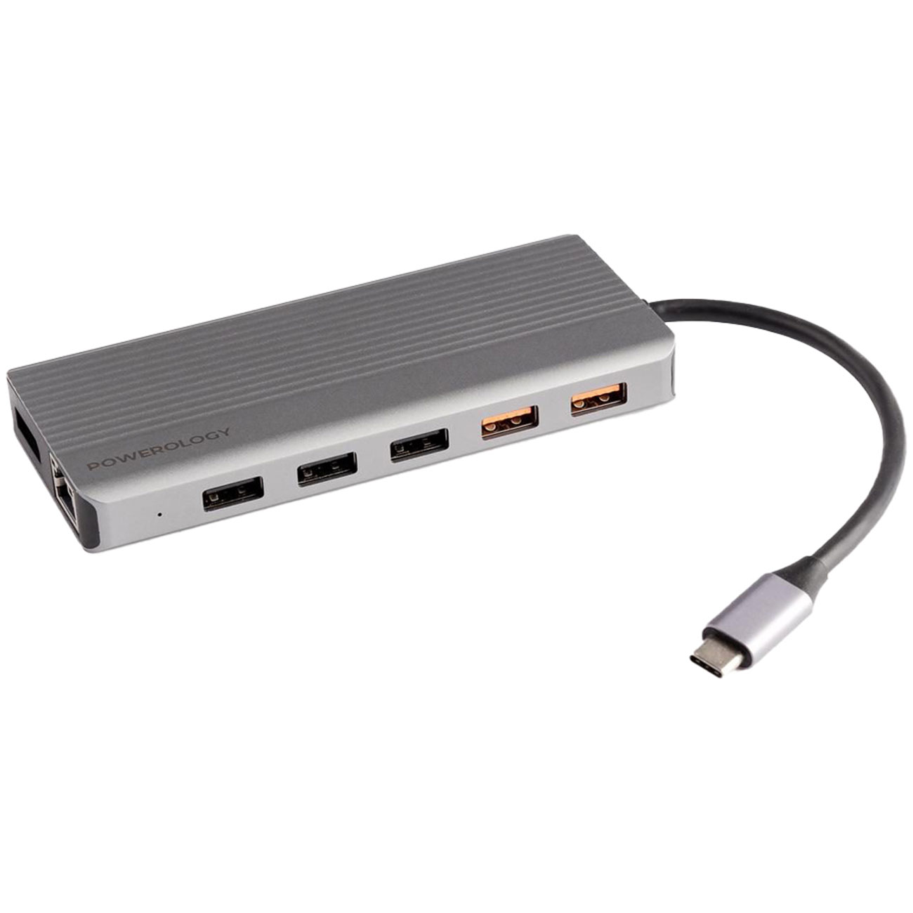 Powerology 12in1 USB-C Hub HDMI Type-C 100W PD Ethernet VGA USB SD MicroSD 3.5AUX P121HBCGY