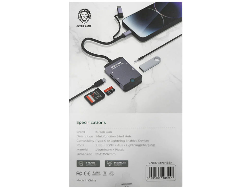 هاب تایپ سی و لایتنینگ مینی 5 درگاه گرین GN5IN1MINIHBBK