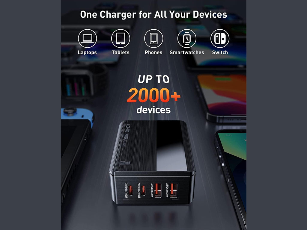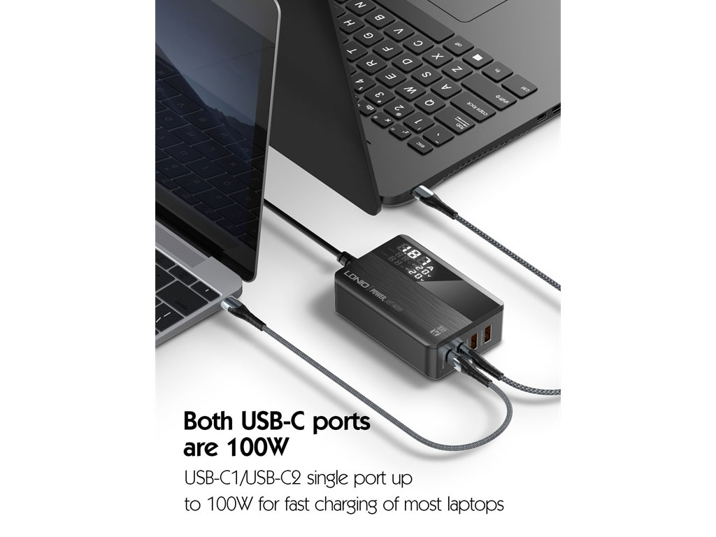 پاور هاب سوپر فست شارژ تایپ سی و یو اس بی 100 وات الدنیو LDNIO A4809C 100W GaN Super Fast Charger