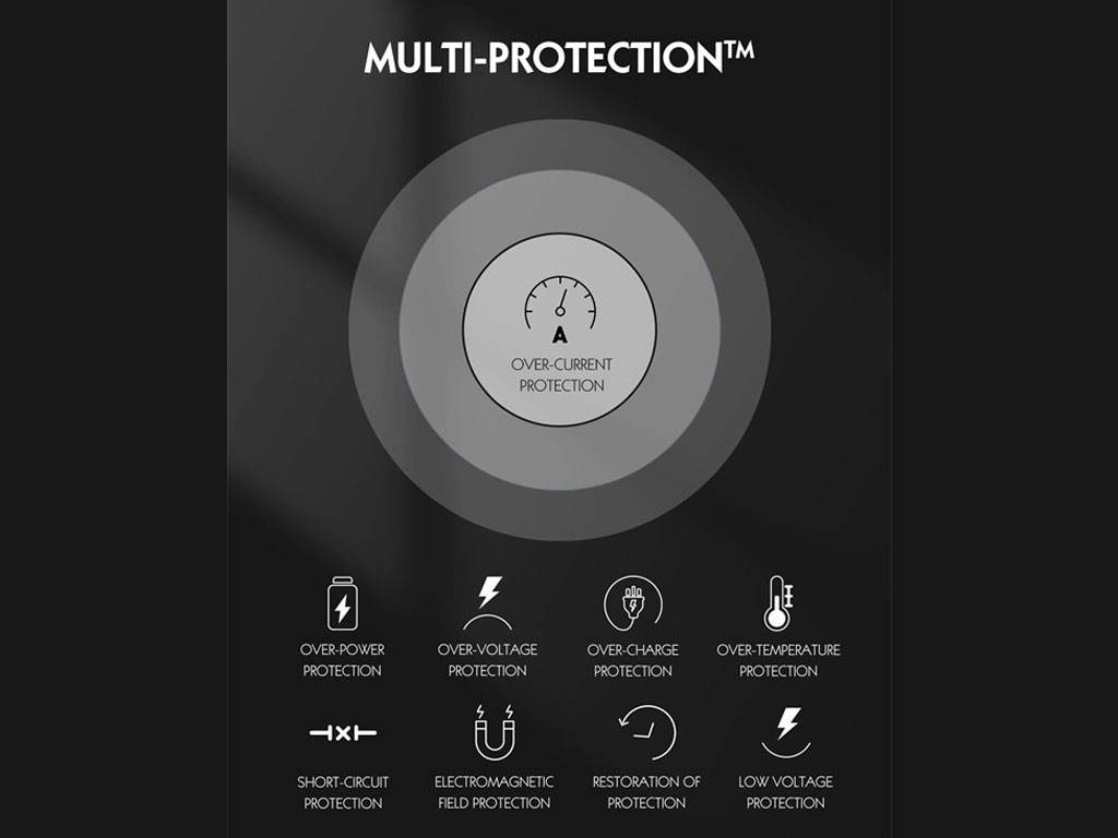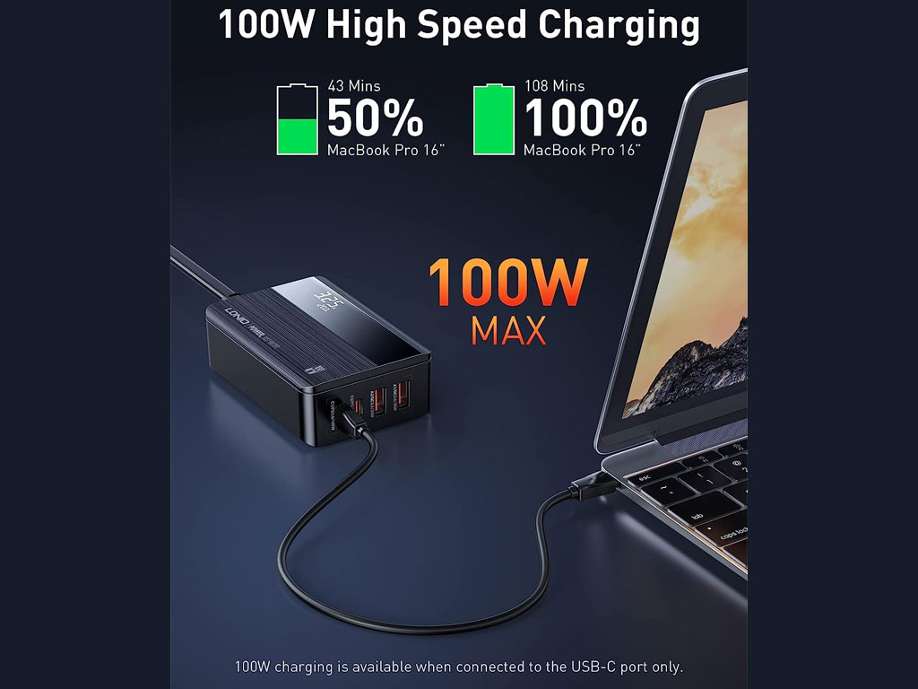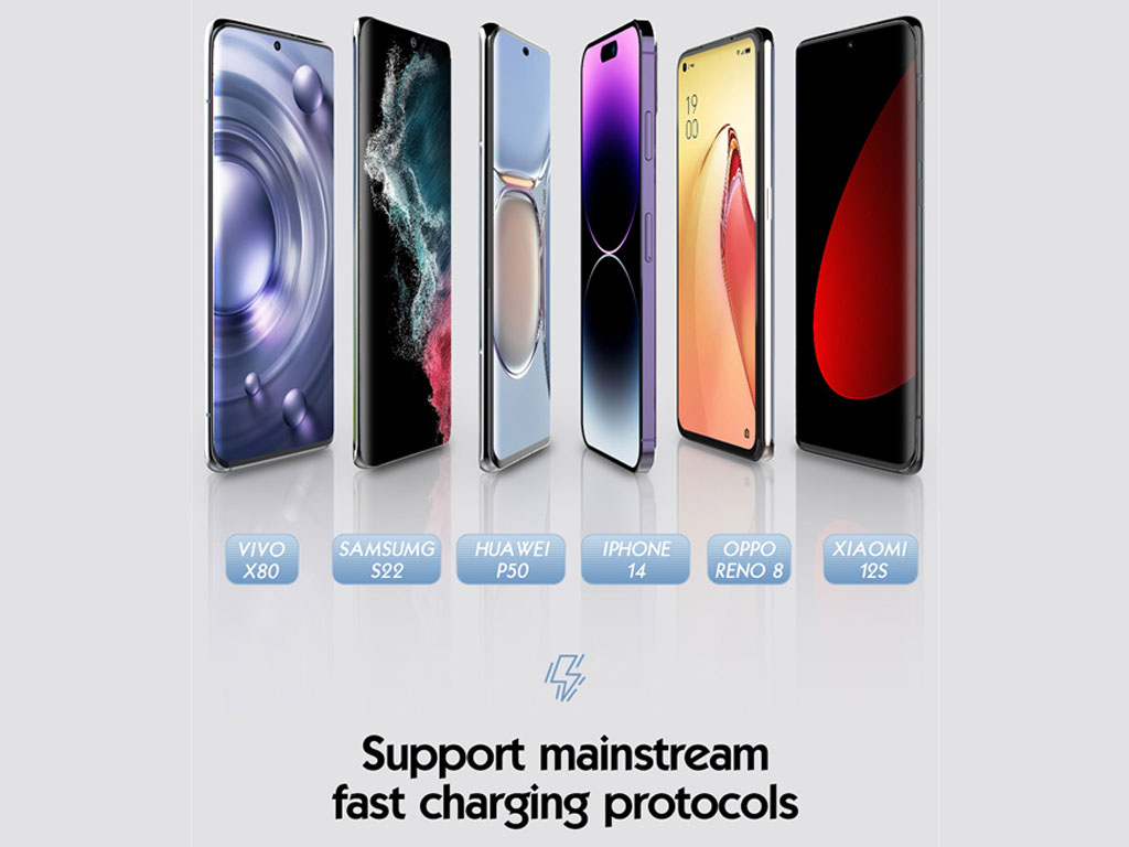 | ولتاژ خروجی | 5V/3A 9V/3A 12V/3A 15V/3A 20V/5A 100W(MAX) : خروجی تایپ سی 1 5V/3A 9V/3A 12V/3A 15V/3A 20V/5A 100W(MAX) : خروجی تایپ سی 2 4.5V/5A 5V/4.5A 5V/3A 9V/3A 12V/2.5A 20V/1.5A 30W(MAX) : خروجی یو اس بی 1 4.5V/5A 5V/4.5A 5V/3A 9V/3A 12V/2.5A 20V/1.5A 30W(MAX) : خروجی یو اس بی 2 65W+30W=95W Max : خروجی تایپ سی 1 + تایپ سی 2 65W+30W=95W Max : خروجی تایپ سی 2 + یو اس بی 1 45W+12W+15W+12W Max : خروجی تایپ سی 1 + تایپ سی 2 + یو اس بی 1 + یو اس بی 2 |