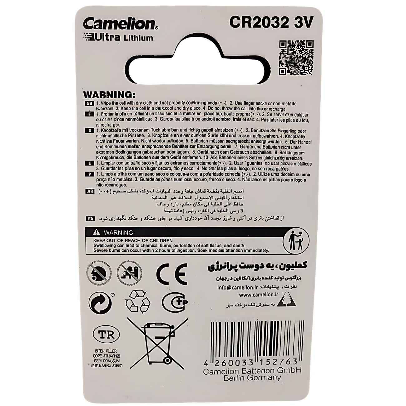 باتری سکهای اولترا لیتیومی ولتاژ 3 ولت ظرفیت 220 میلیآمپر کملیون Camelion CR2032