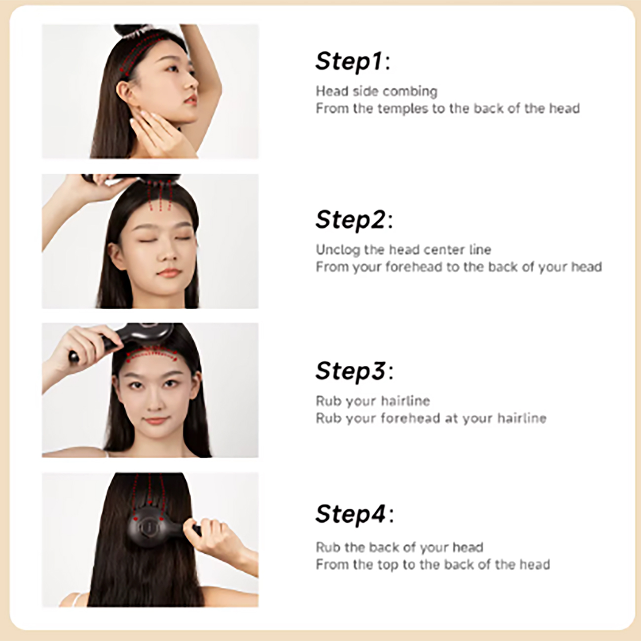 | دارای سه حالت مختلف | نور قرمز درمانی برای رشد مو/ حالت ماساژ برای مراقبت/ حالت تمیز کردن پوست سر |