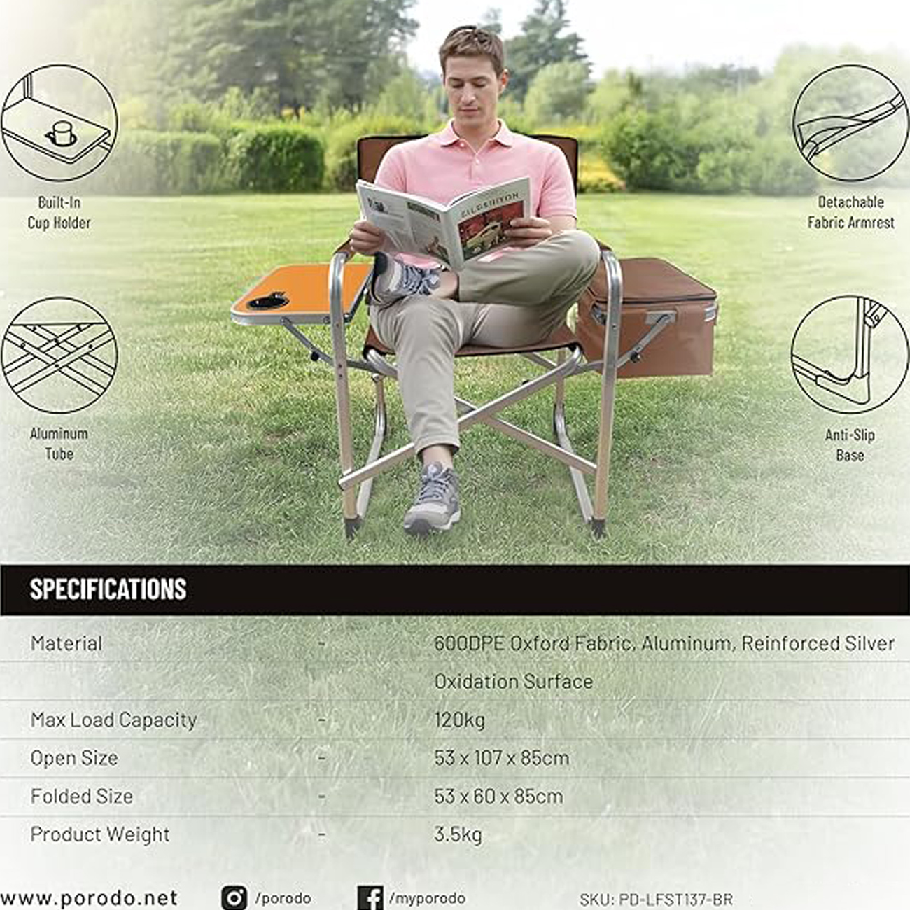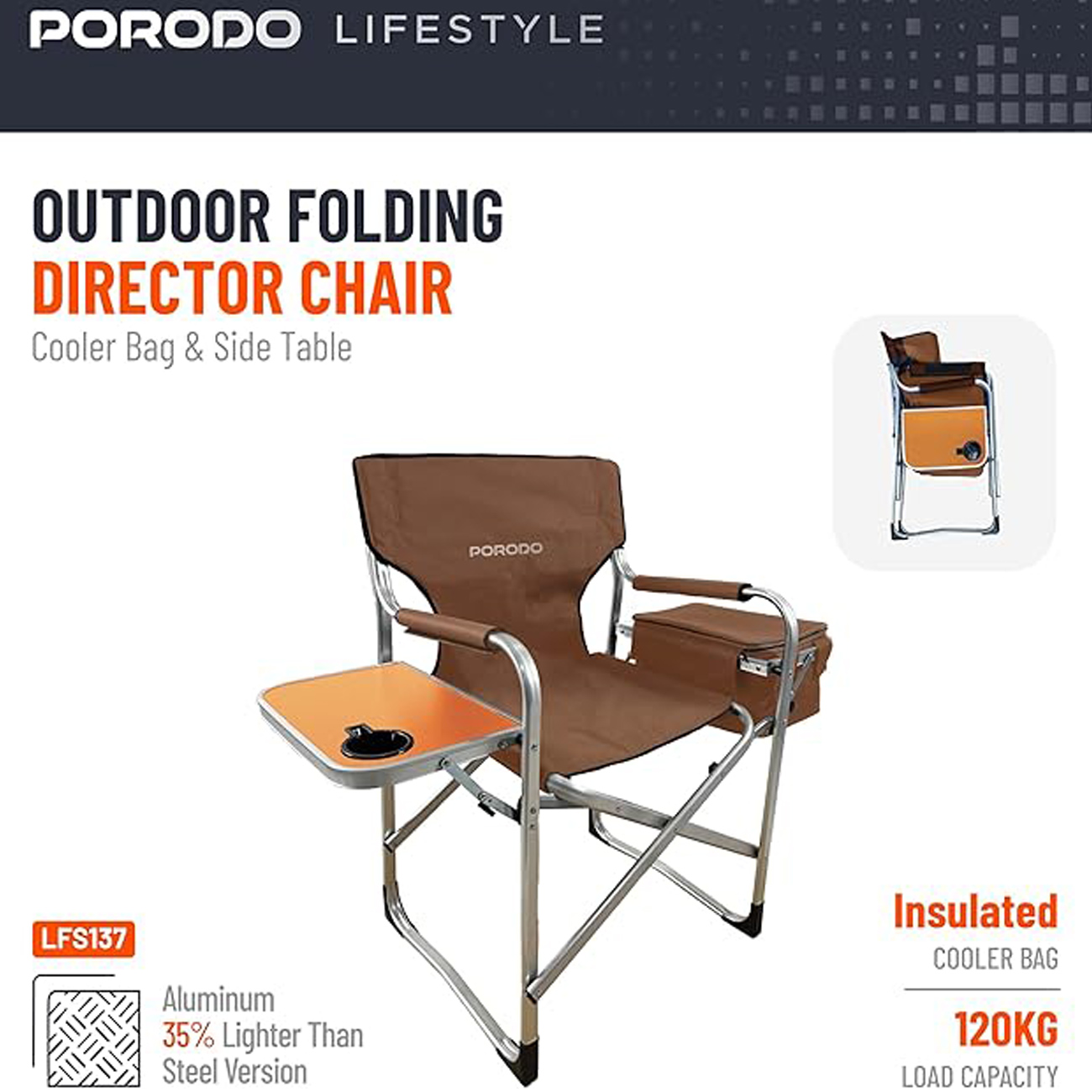 Porodo Lifestyle Outdoor Folding Director Chair PD-LFST137-BR /LFS137