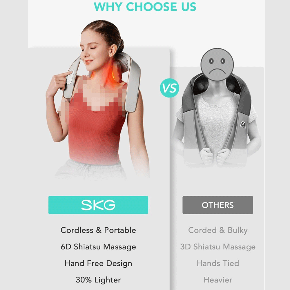 SKG H5 Mini Portable Shoulder and Neck Massager, 6D Shiatsu Massage Therapy, Thermotherapy
