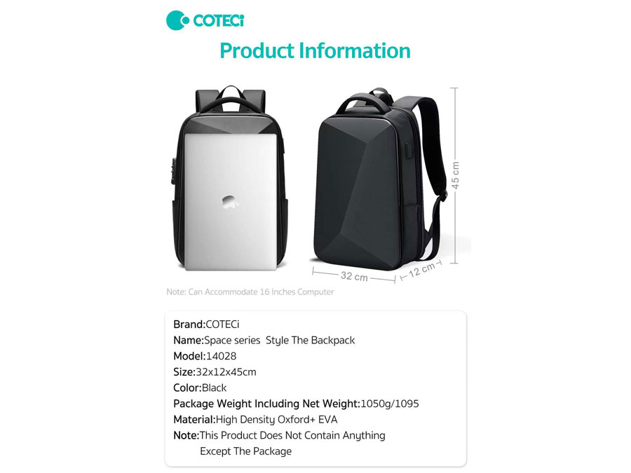 | مشخصات کوله پشتی لپ تاپ 16 اینچی ضدآب کوتتسی | |