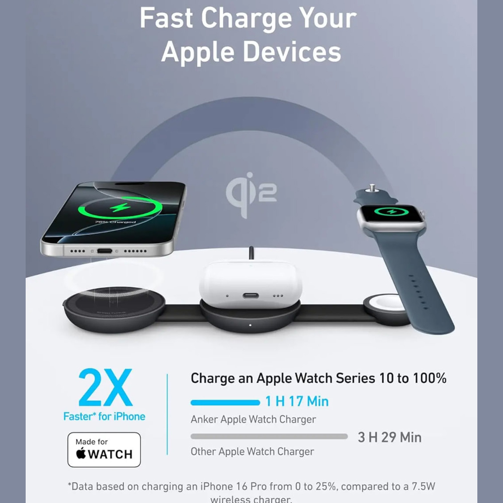 Anker MagGo 3-in-1 Foldable Charging Pad 15W Qi2 Wireless Charger
