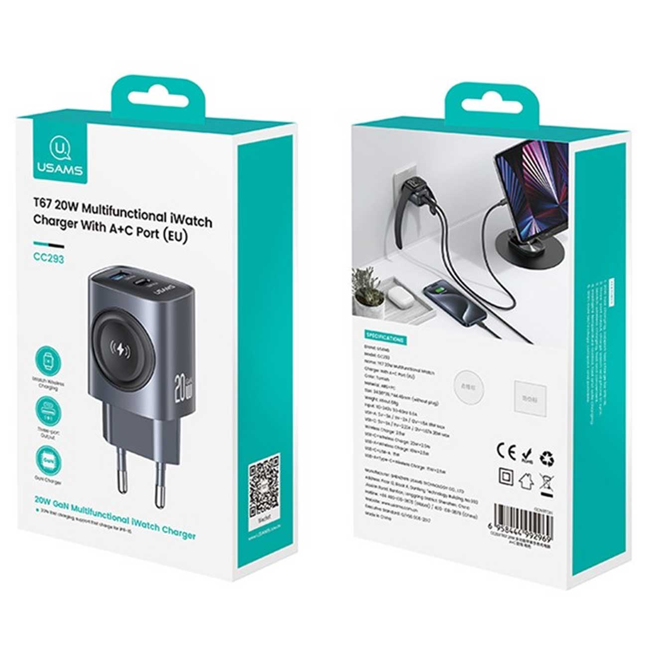 Usams CC293 T67 20W with Wireless Charging for Smart Watch