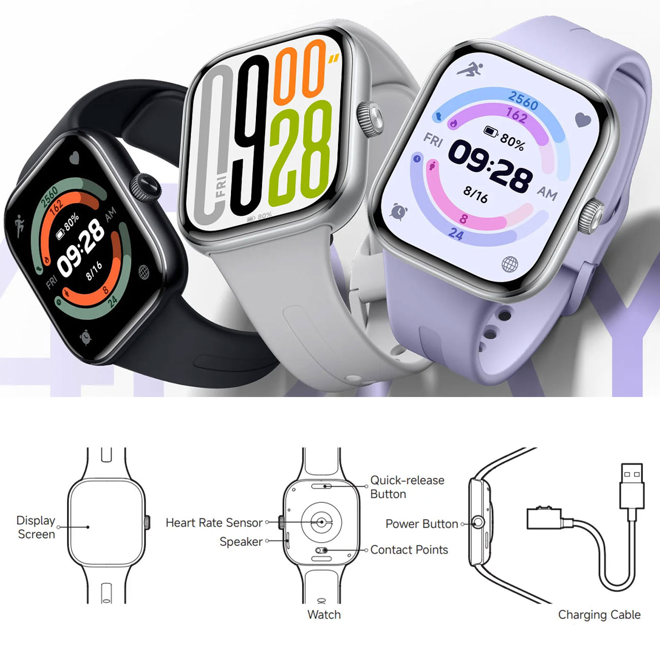| محتویات جعبه | ساعت ردمی واچ 5، کابل شارژ مغناطیسی، دفترچه راهنما |