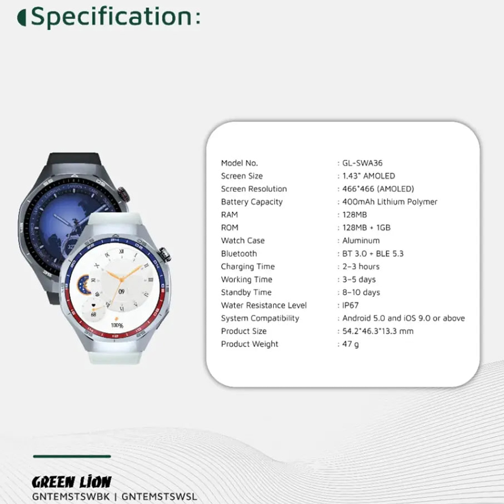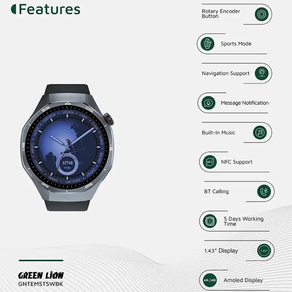 Green Lion GL-SWA36 Tech Master Smart Watch GNTEMSTSWBK