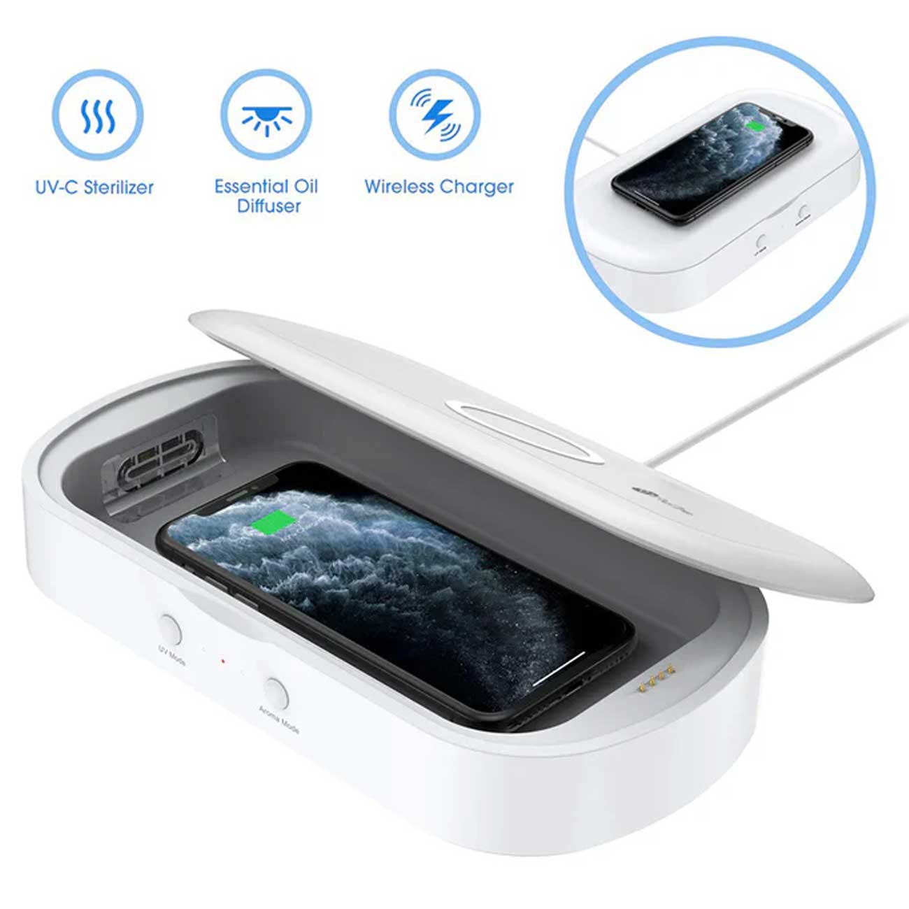| توان خروجی | توان خروجی شارژ بیسیم: 10W,توان ضدعفونی: 3W,توان پخش رایحه: 0.5W |
