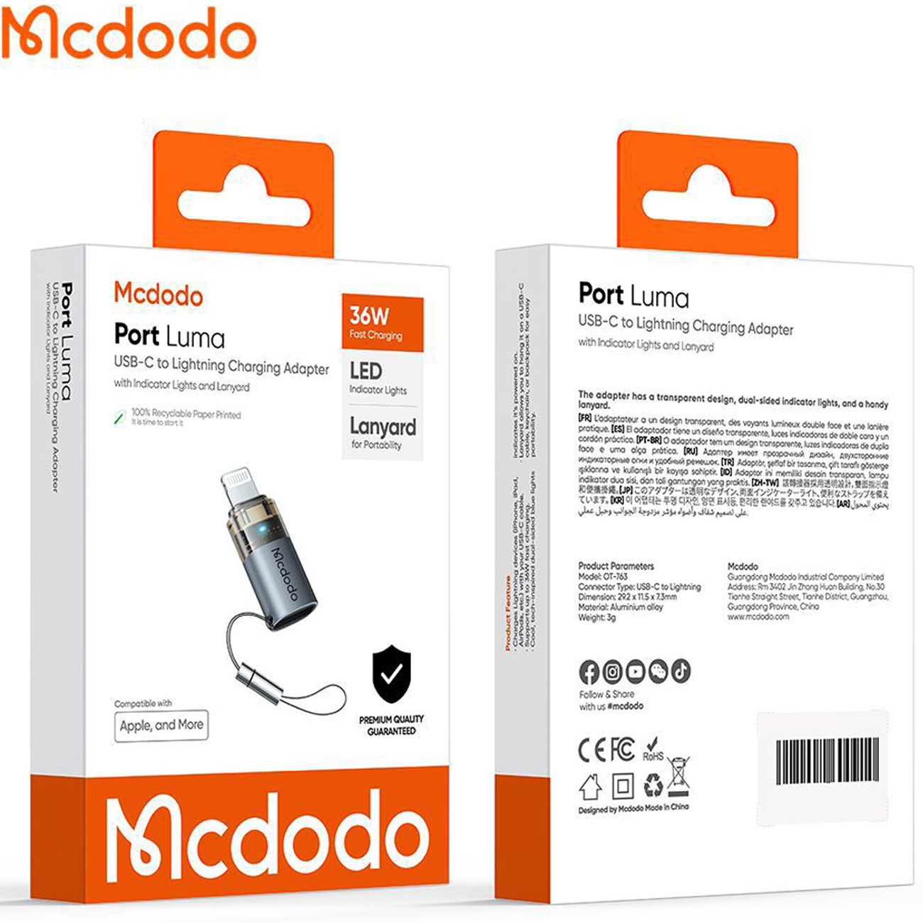 MCDODO OT7630 USB-C TO LIGHTNING 36W CHARGING ADAPTER