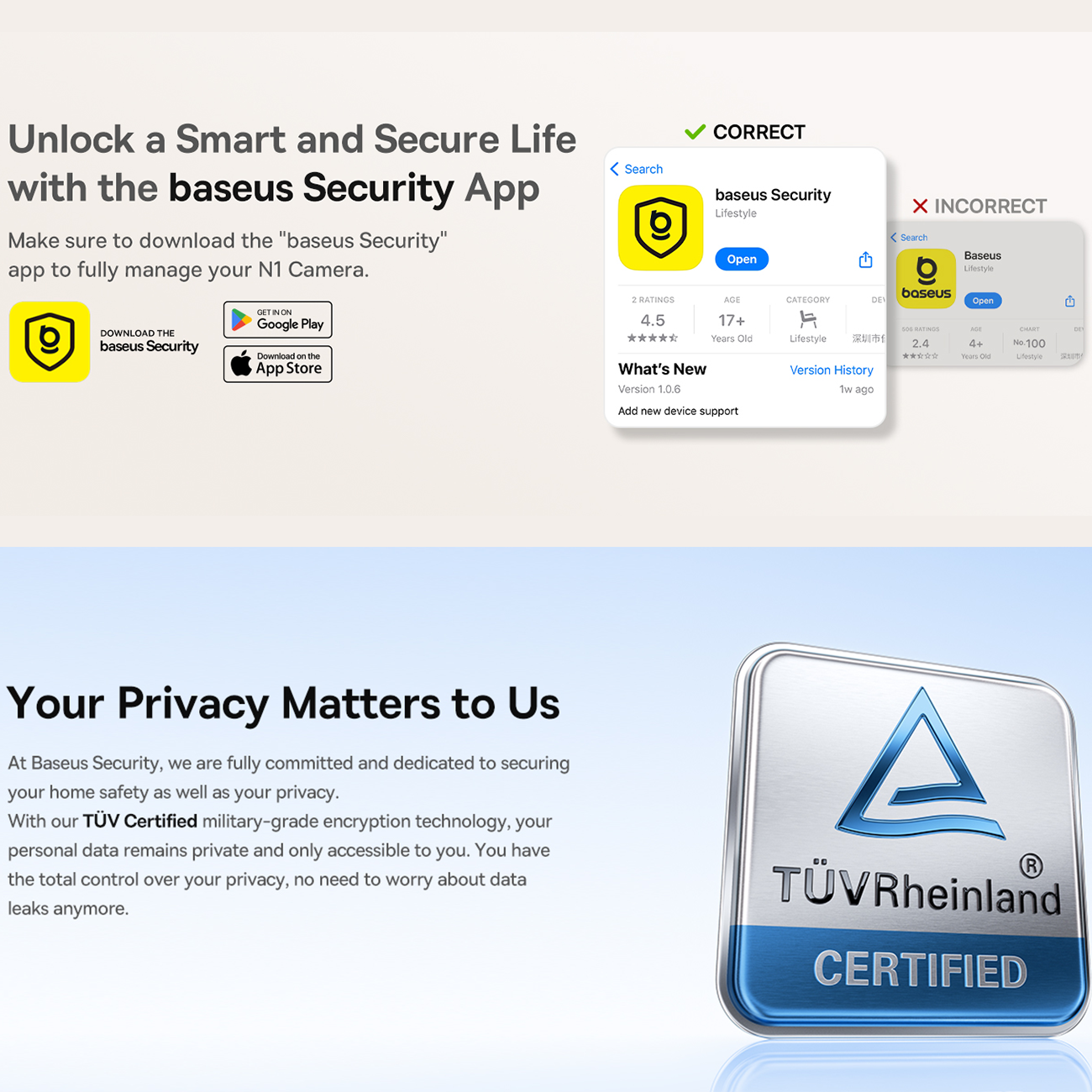 | پشتیبانی از اپلیکیشن | Baseus Security برای اندروید و iOS |
