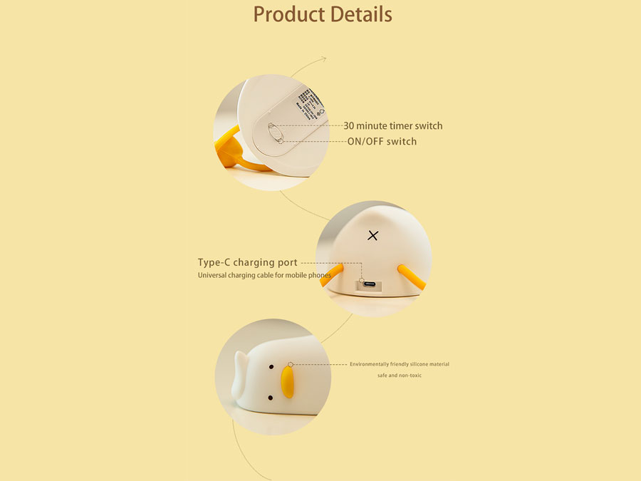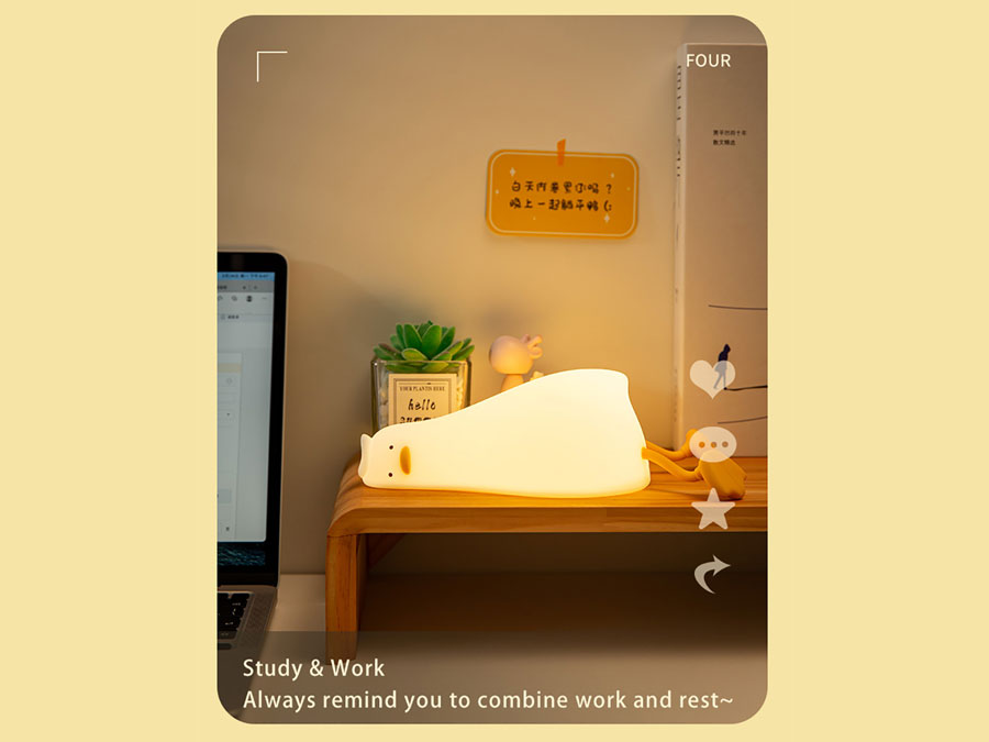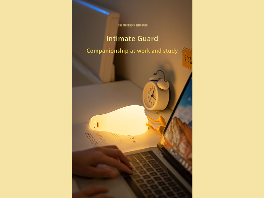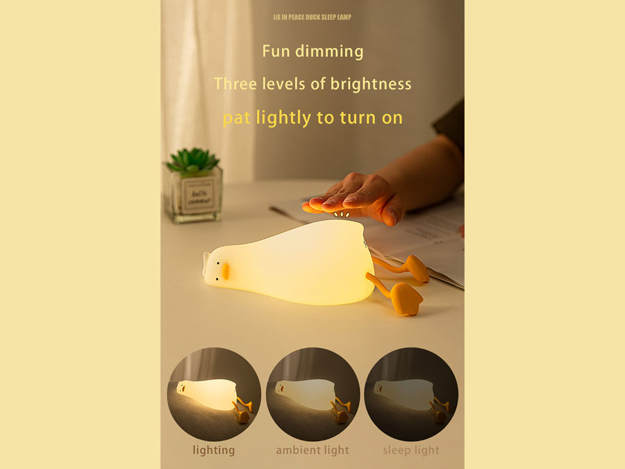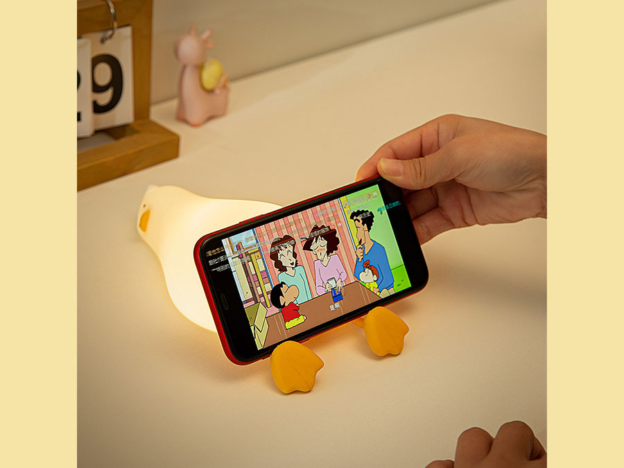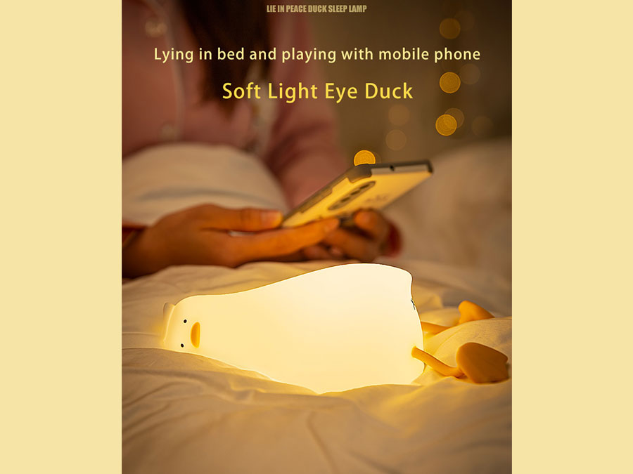 Festive LED Lying Flat Duck Soft Silicone Lamp Slapping Induction Bedside Bedroom Night Light with Mobile Phone Holder