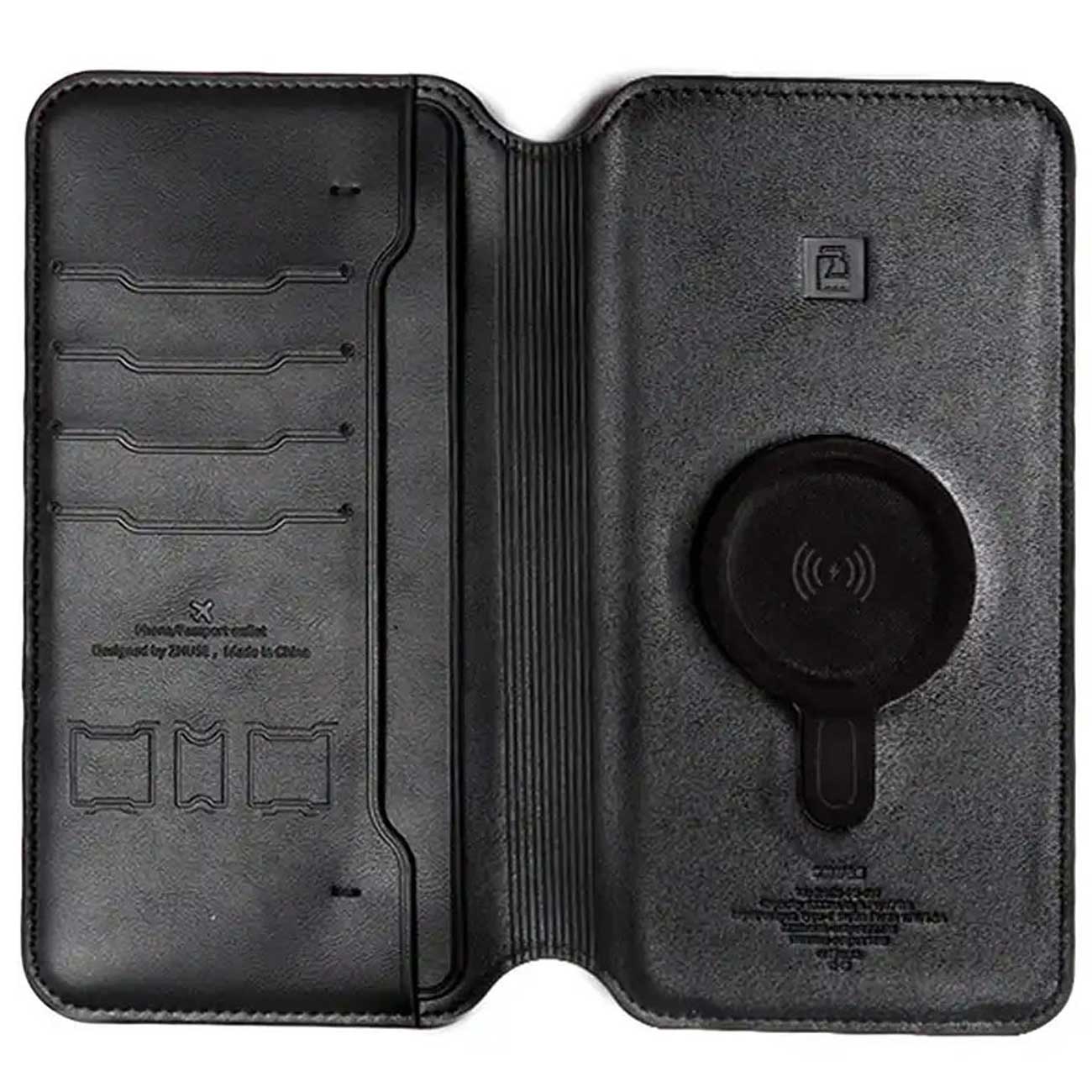 پاوربانک وایرلس 15 وات 10000 و کیف پول چرمی ژوس ZS-PB-037