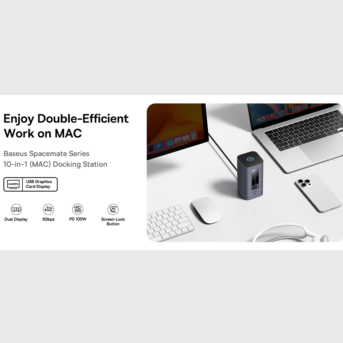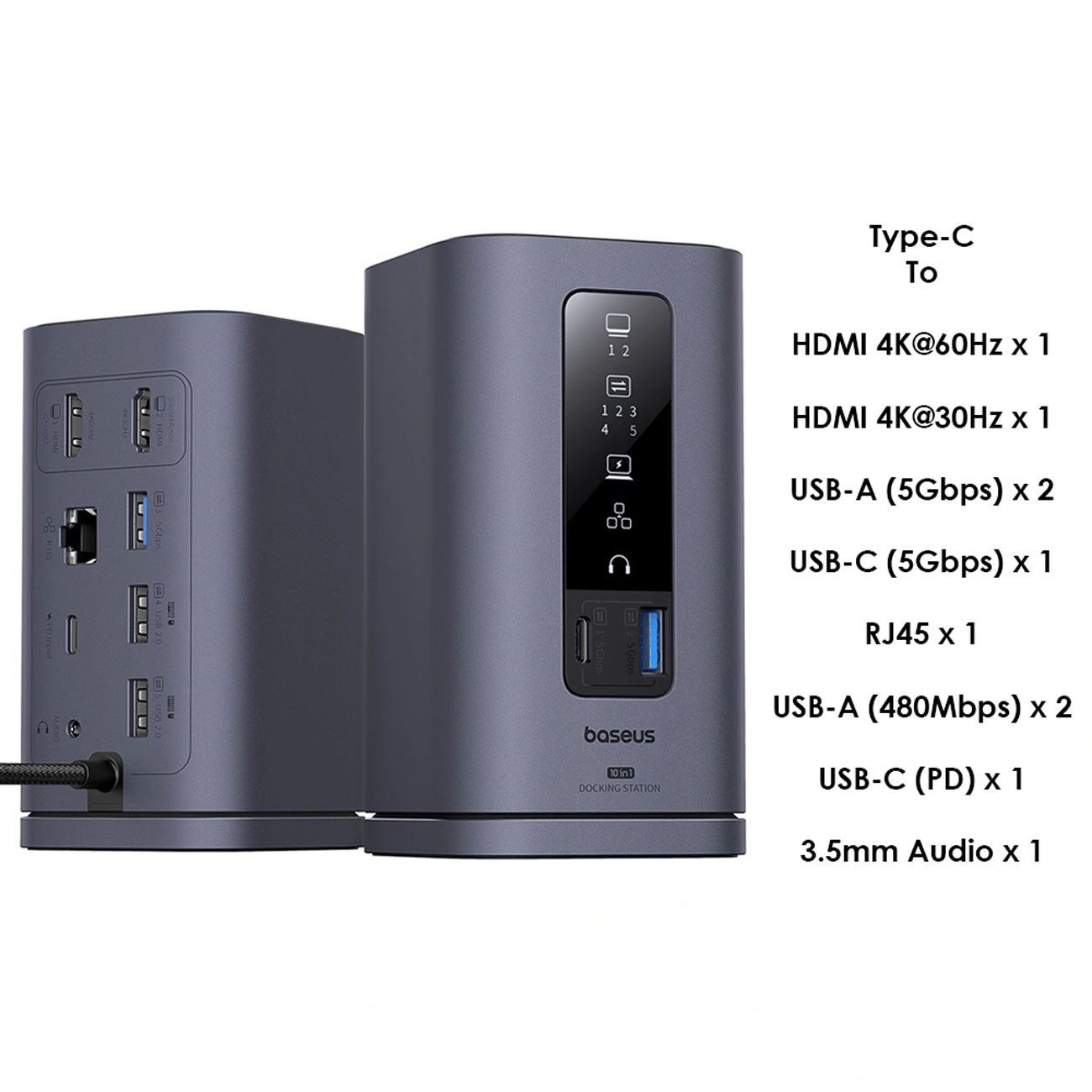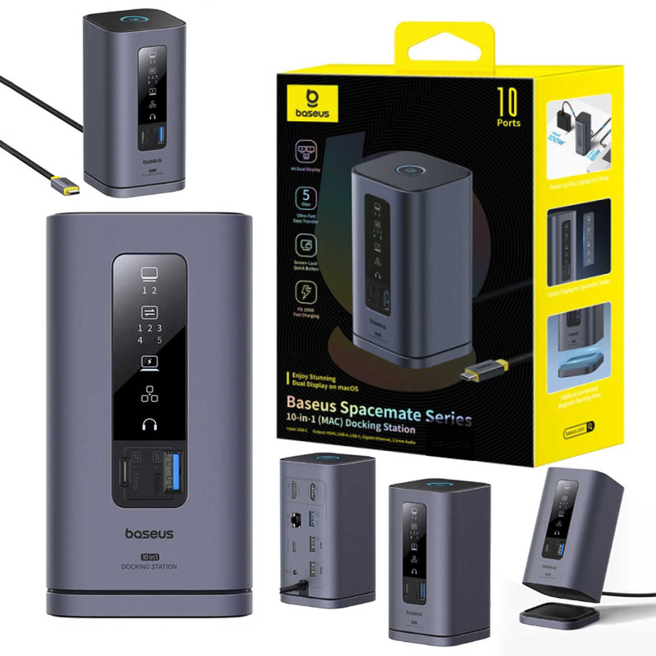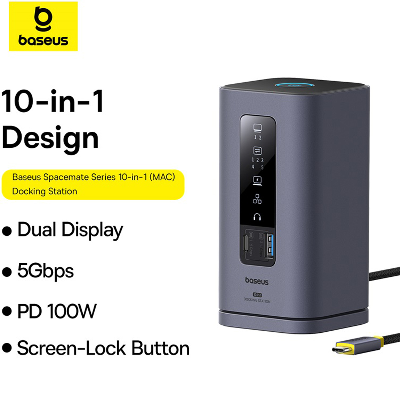 Baseus Spacemate Series 10-in-1 Dual Screen Docking Station (Windows, MacOS, Android, Chrome OS)