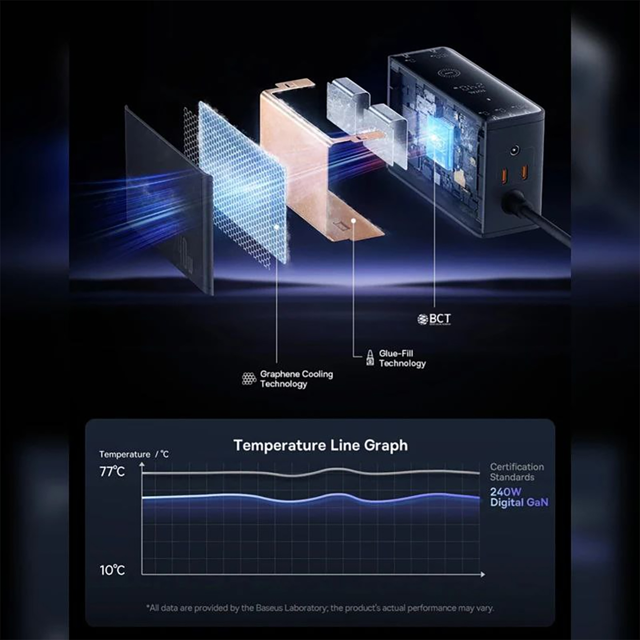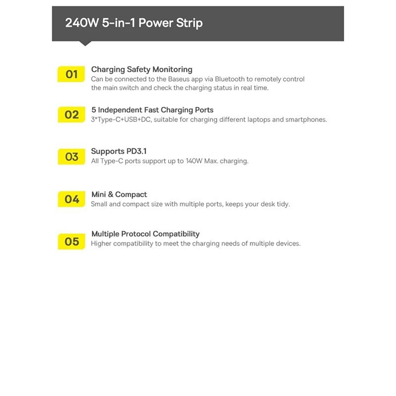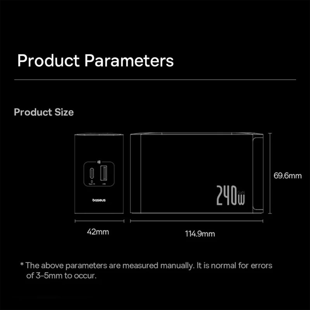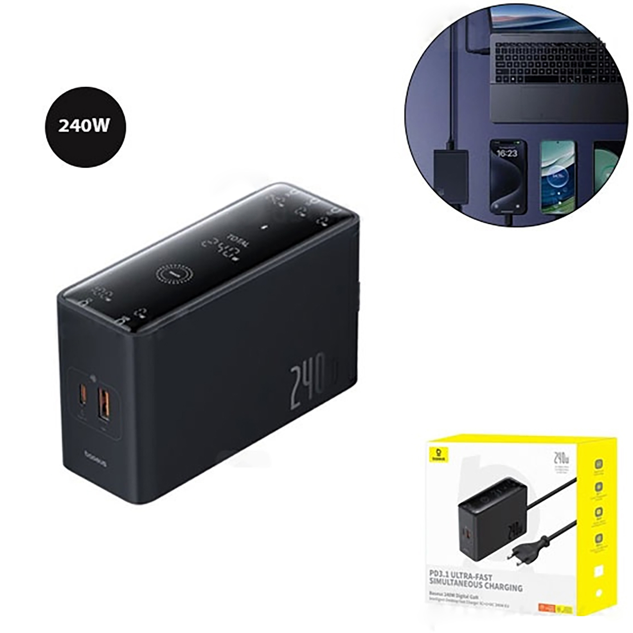Baseus Digital GaN Intelligent Desktop Fast Charger 3C+U+DC 240W EU Cluster with DC Charging Cable 240W 1m