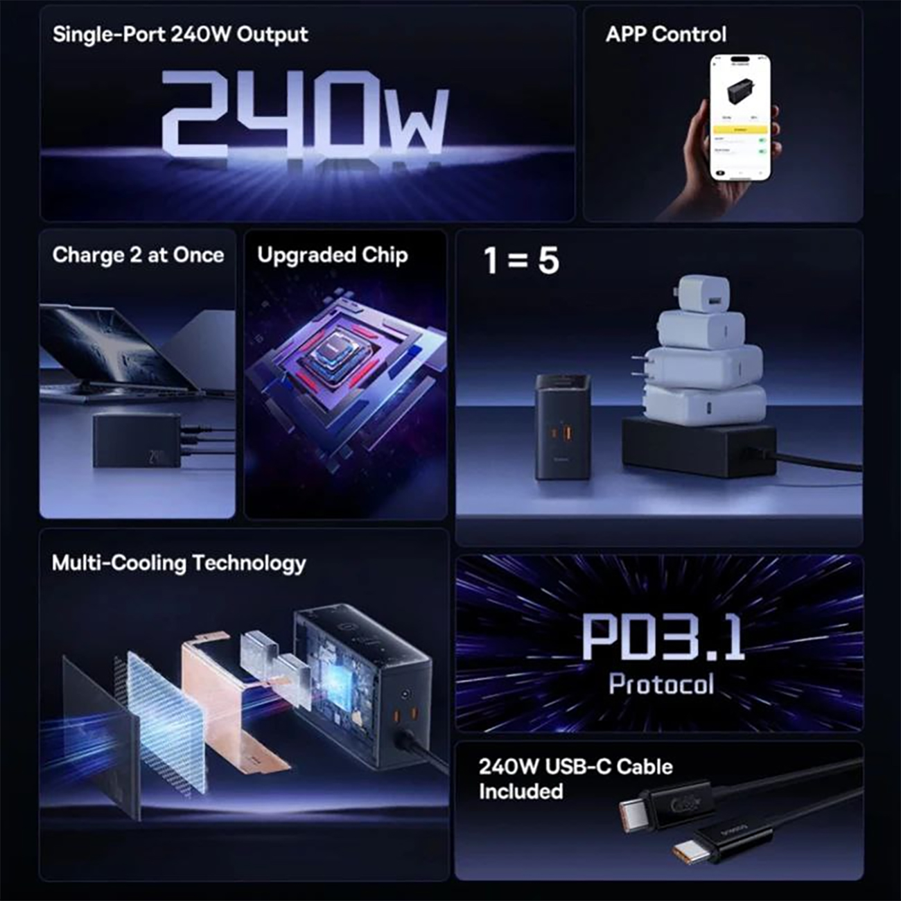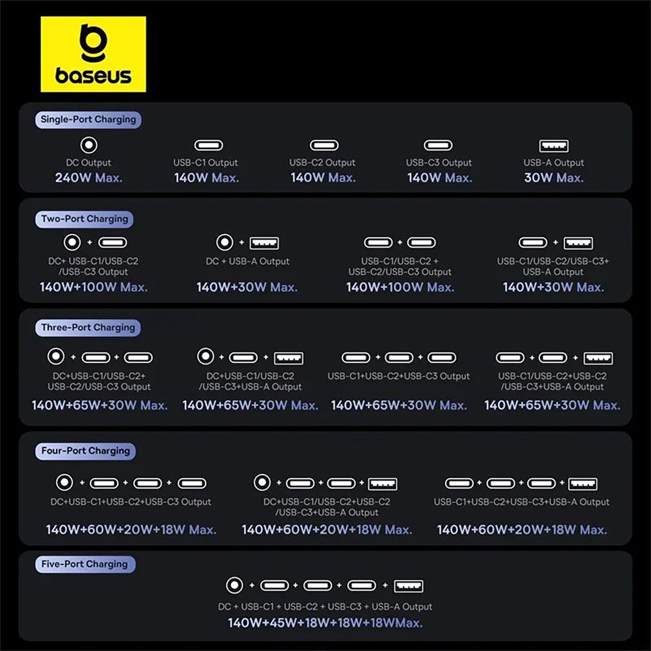 | حداکثر توان خروجی | 240 وات شارژ |