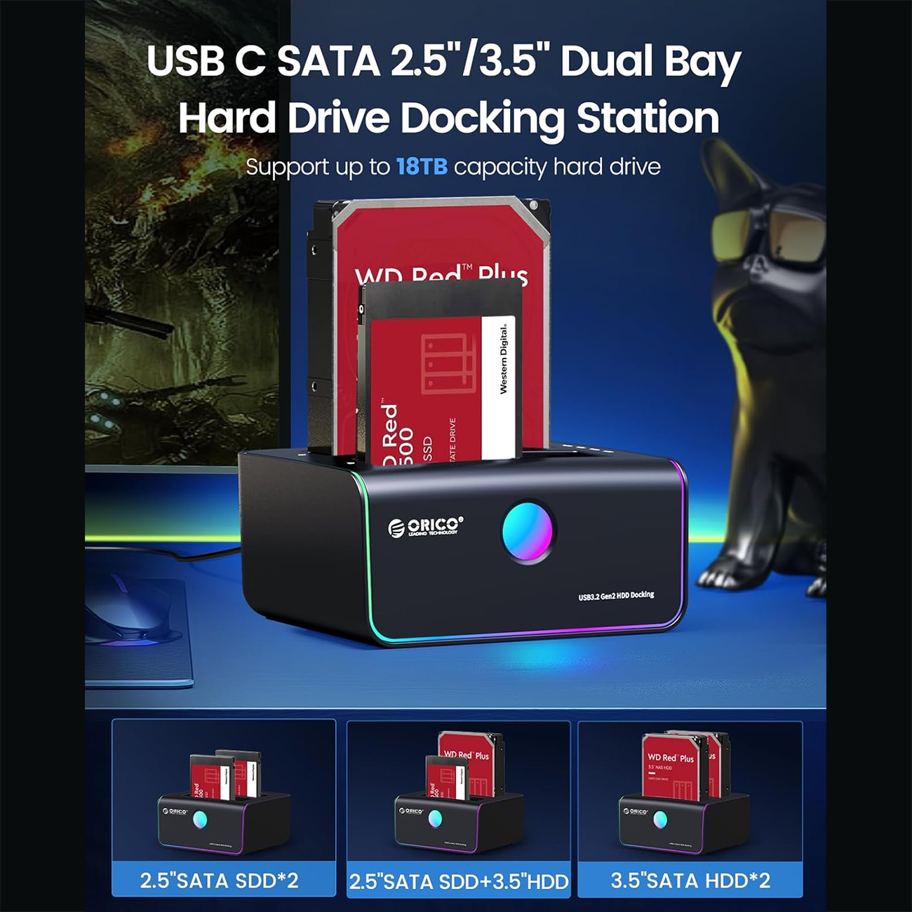 ORICO 8828C3-C RGB Hard Drive Docking Station Offline Clone