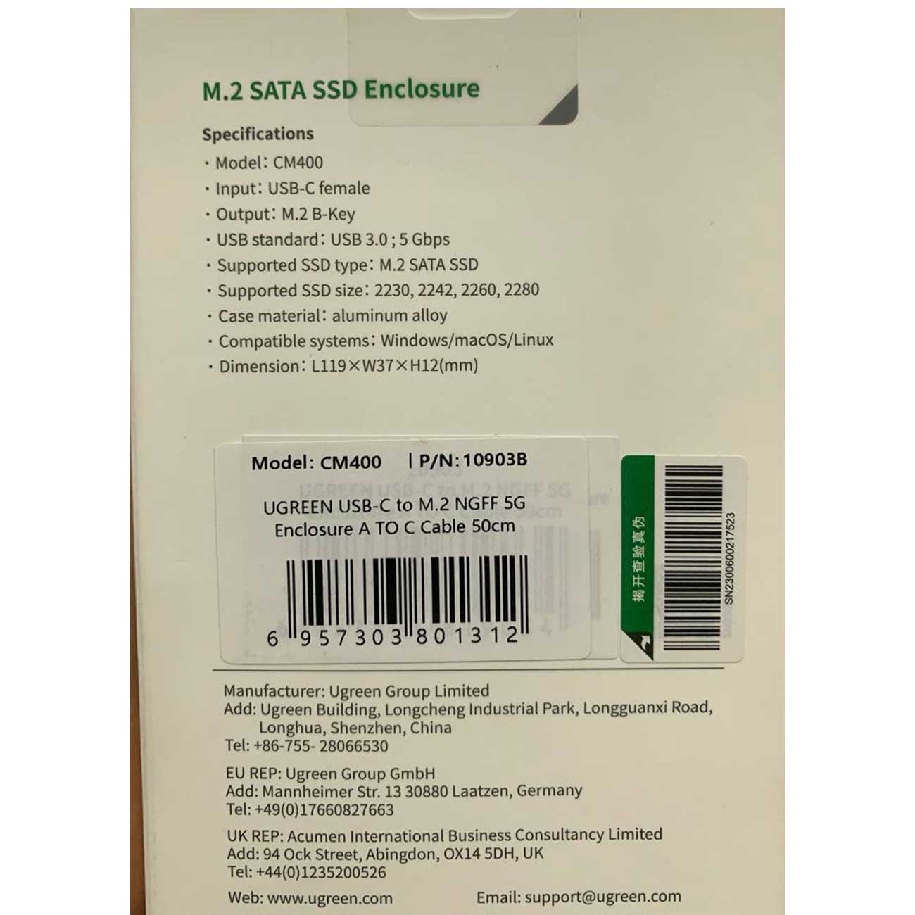 Ugreen Hard Drive Bay M.2 B-Key SATA 3.0 5Gbps + USB Type C Cable CM400 10903