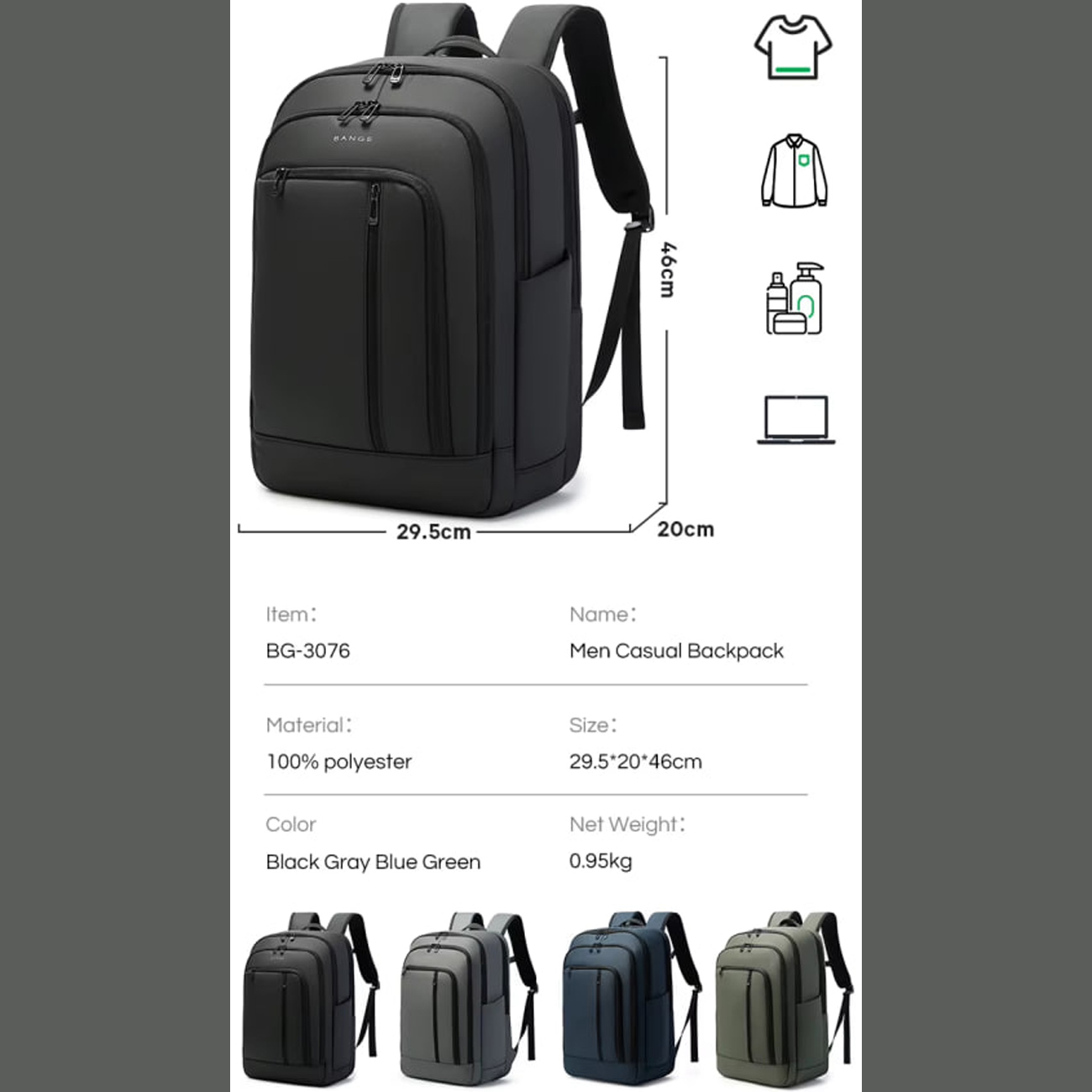 Bange BG-3076 Waterproof Lightweight Business Travel Backpack Large Capacity School
