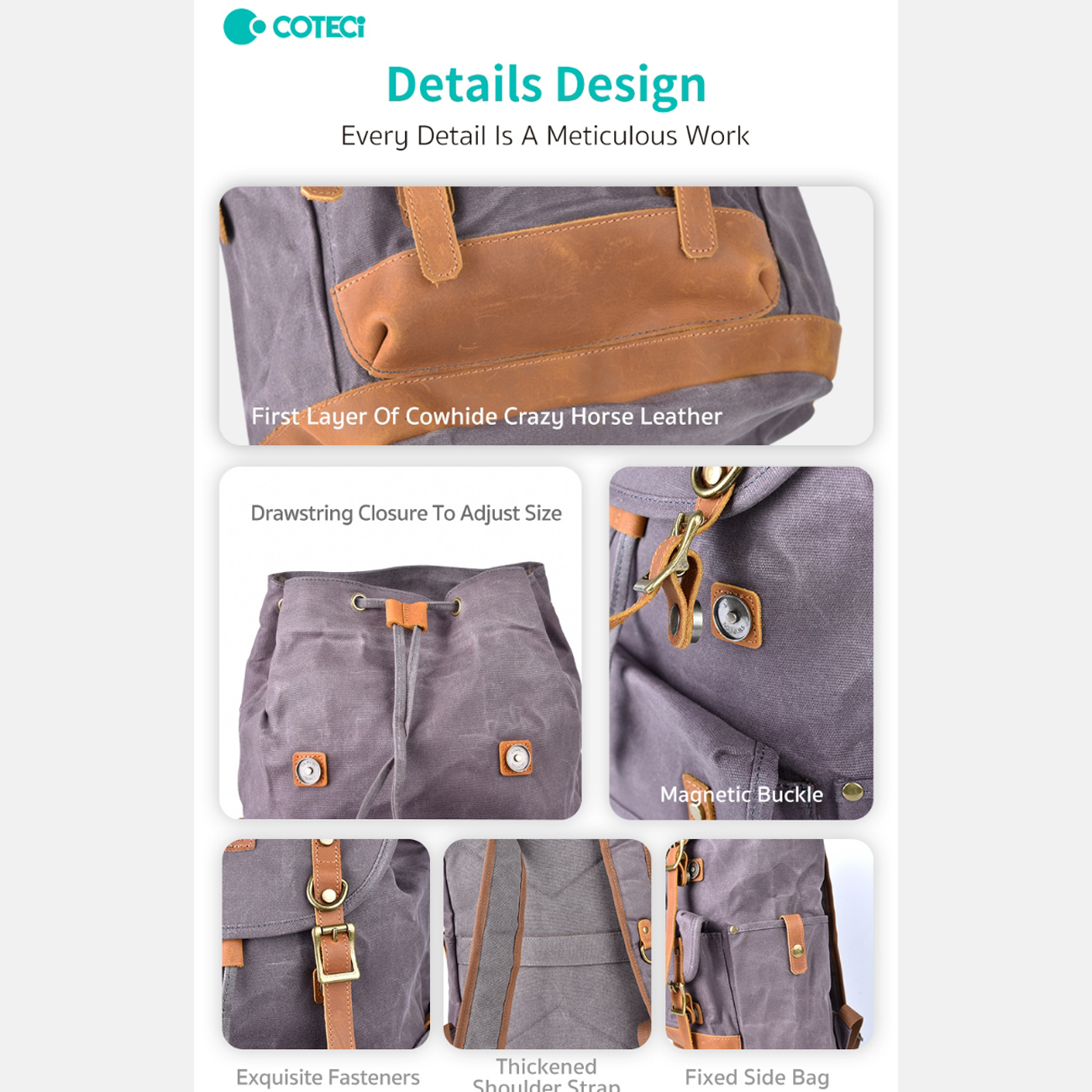 | جنس | بدنه از پارچه مقاوم کنواس,بندهای و پوششهای تزئینی از چرم گاوی با کیفیت بالا |